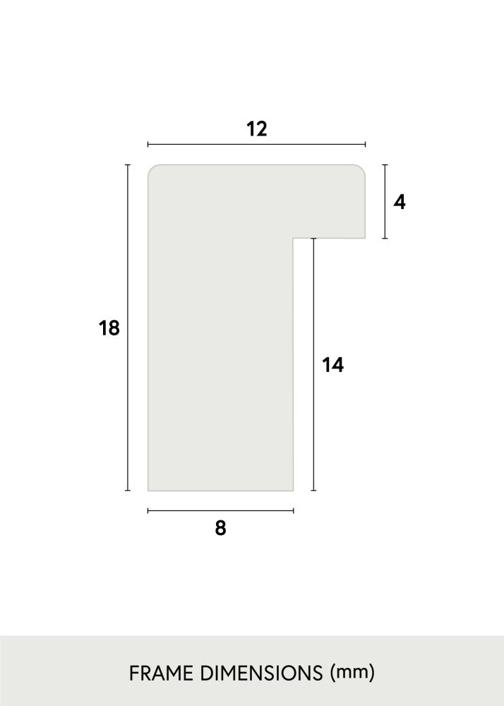 Kehys Oslo Plexiglas Vit on leveydeltään 12 mm ja syvyydeltään 18 mm.