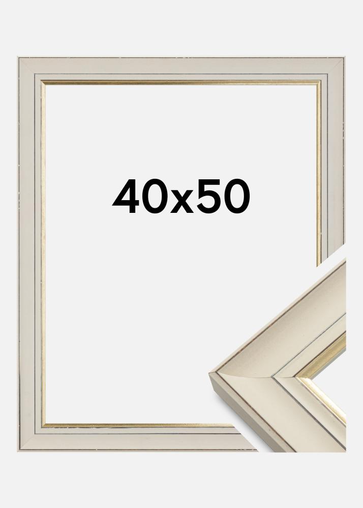 Klassinen kehys jännittävällä retrotunnelmalla. Kehyksessä on valkoinen kulunut pinta ja kuvan aihetta kiertää tyylikäs kultainen reunus. Kehyksessä on neutraali muotoilu ja se on väriltään sopiva lähes mihin tahansa tilaan ja aiheeseen.