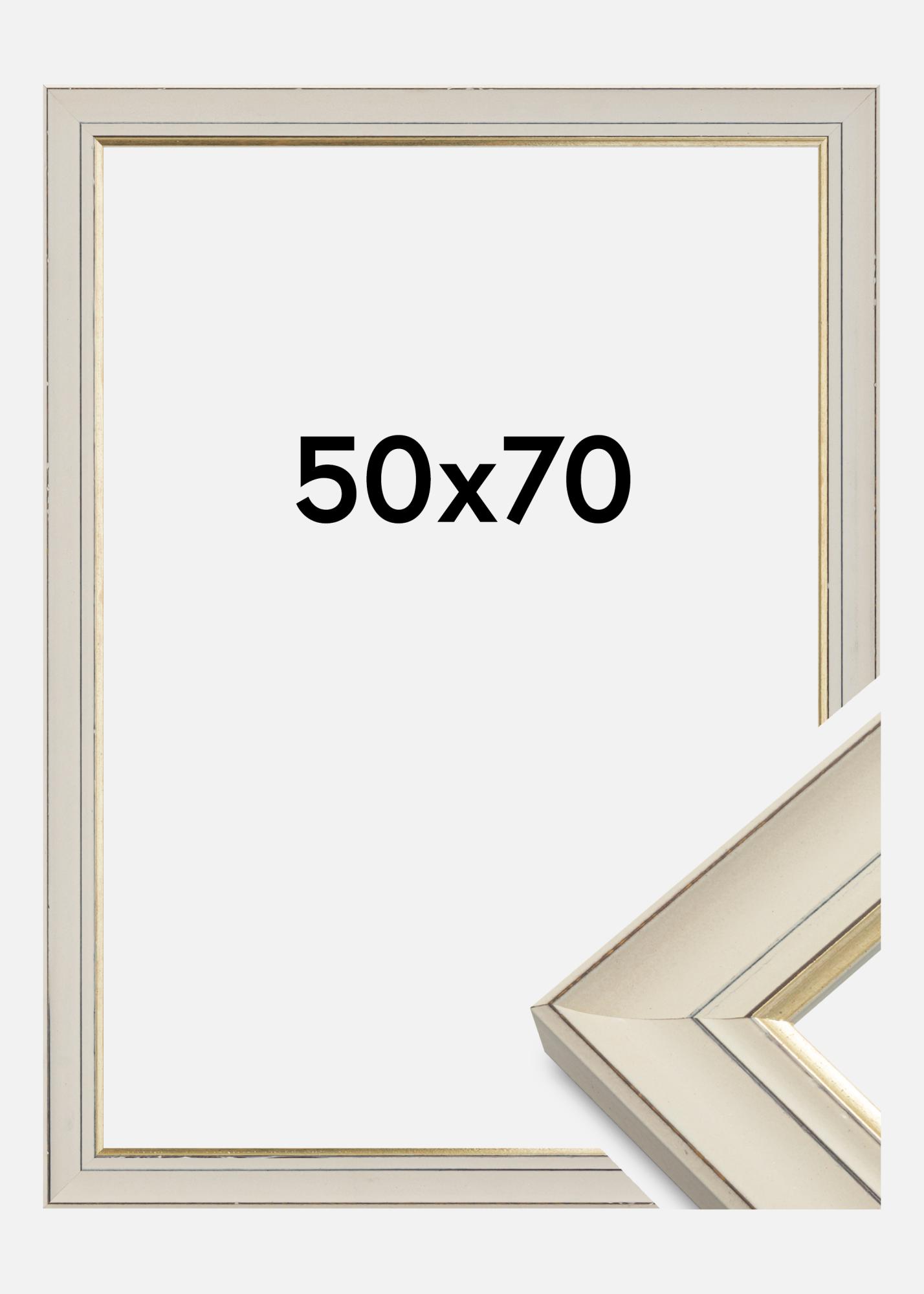Klassinen kehys jännittävällä retrotunnelmalla. Kehyksessä on valkoinen kulunut pinta ja kuvan aihetta kiertää tyylikäs kultainen reunus. Kehyksessä on neutraali muotoilu ja se on väriltään sopiva lähes mihin tahansa tilaan ja aiheeseen.