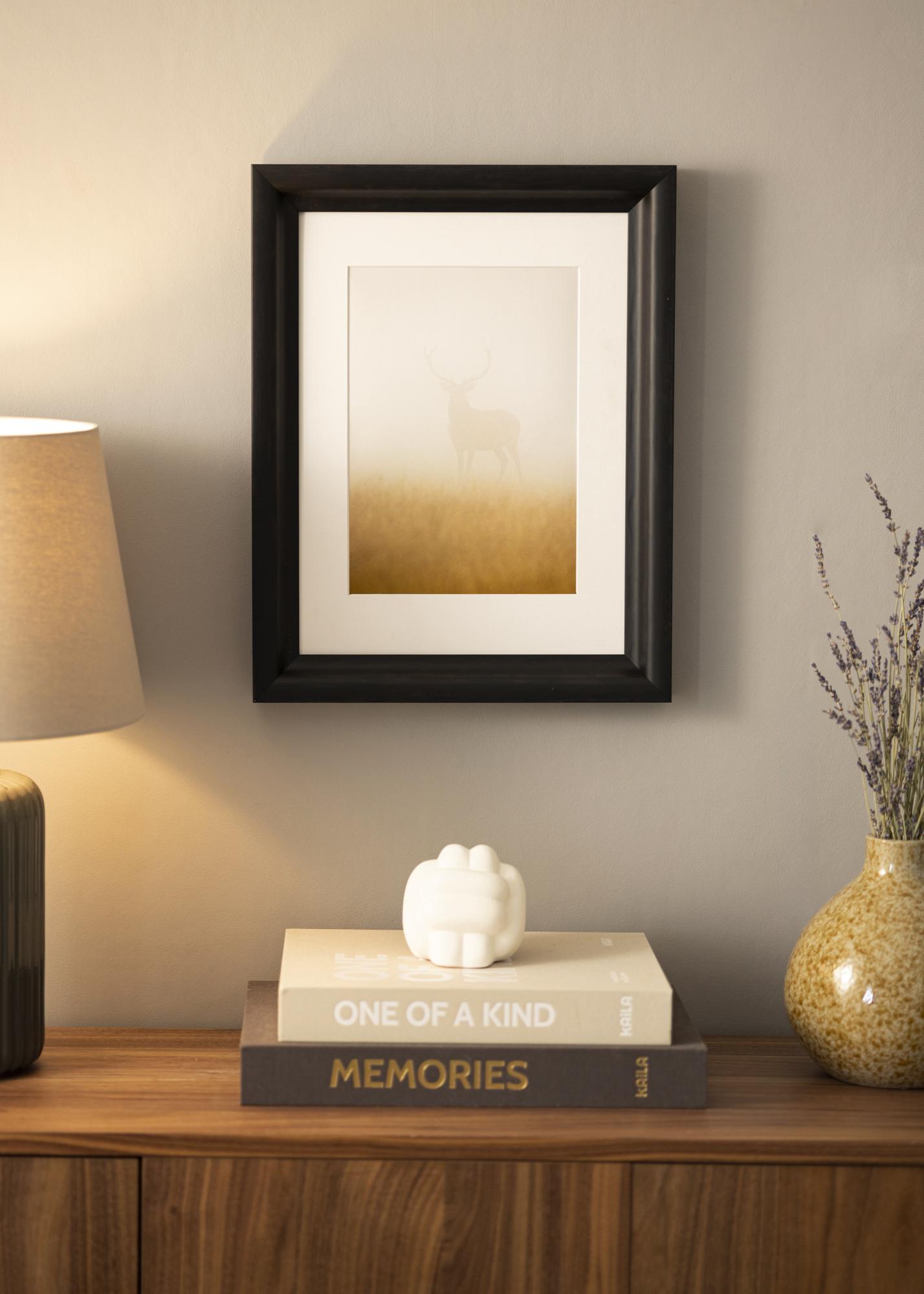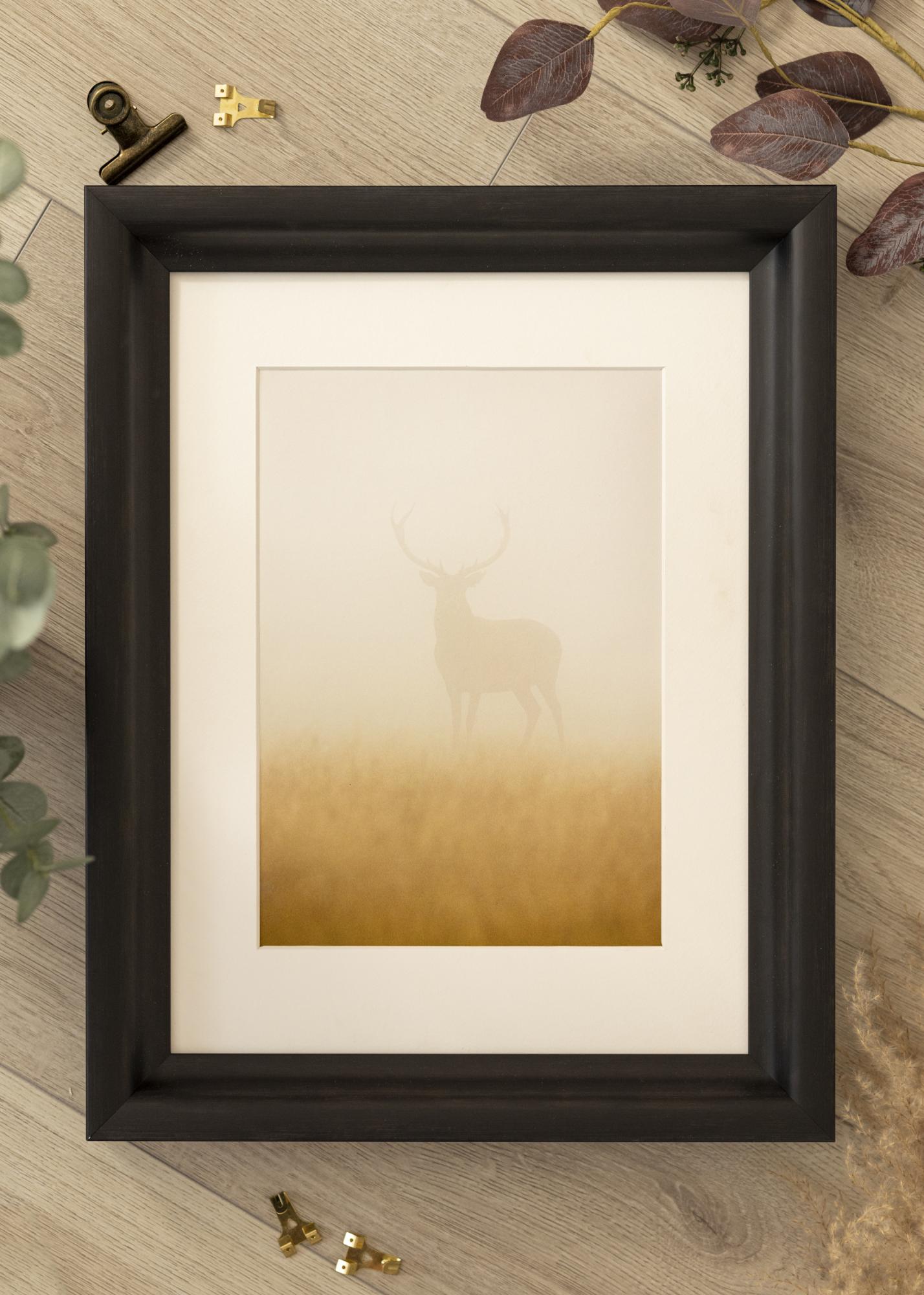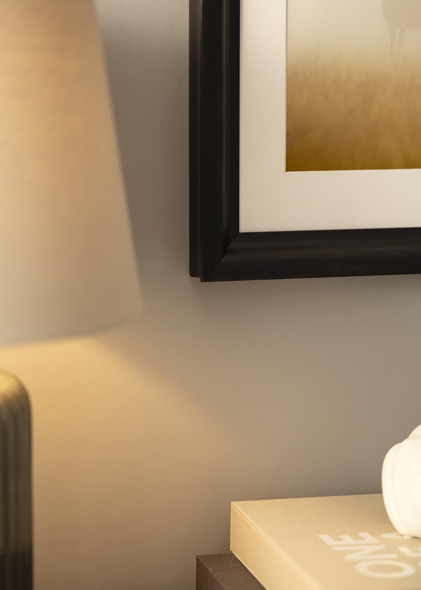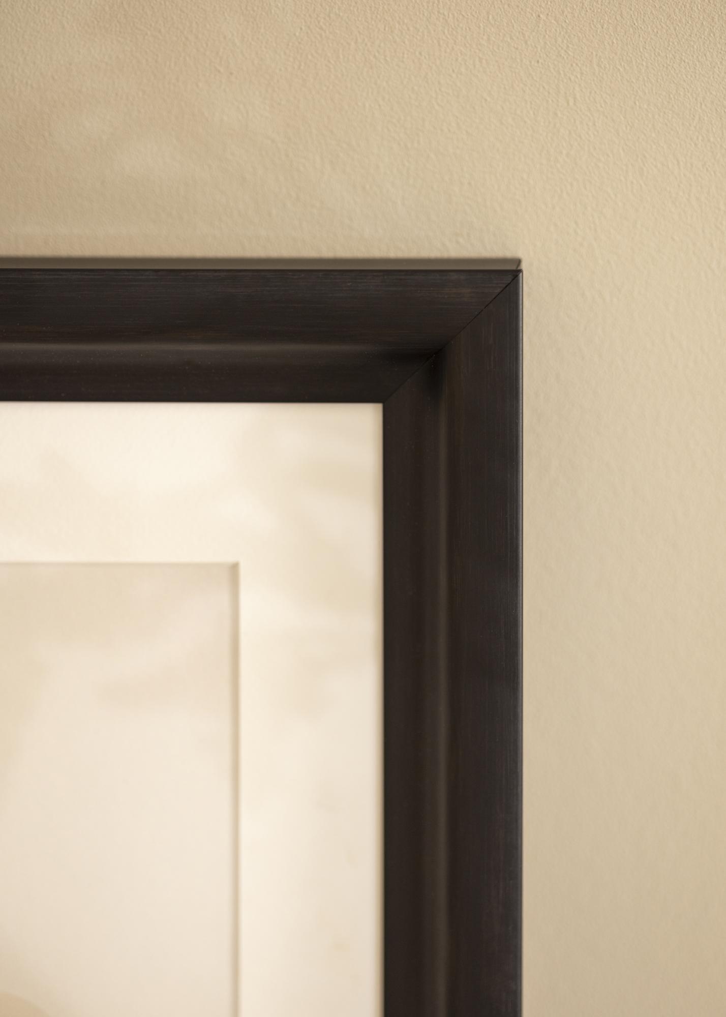 Perinteinen taulukehys tummassa mustanruskeassa värissä, joka on lähempänä mustaa kuin ruskeaa. Erinomainen valinta, kun etsit tumman puun sävyistä mittatilauskehystä.