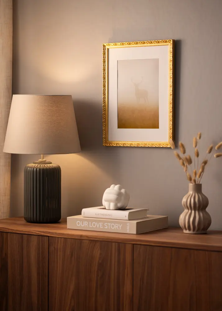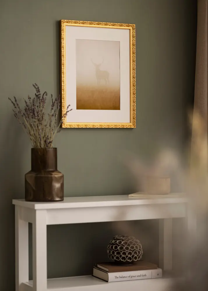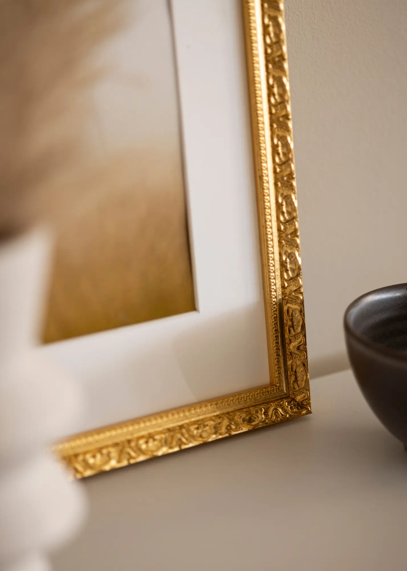 Tyylikäs, retrosta inspiroitunut kullanvärinen valokuvankehys, joka on valmistettu Italiassa. Korkealaatuinen kuvakehys antaa lisää näkyvyyttä hienoimmille kuvillesi, etenkin yhdessä passepartoutin kanssa (ei sisälly tuotteeseen).