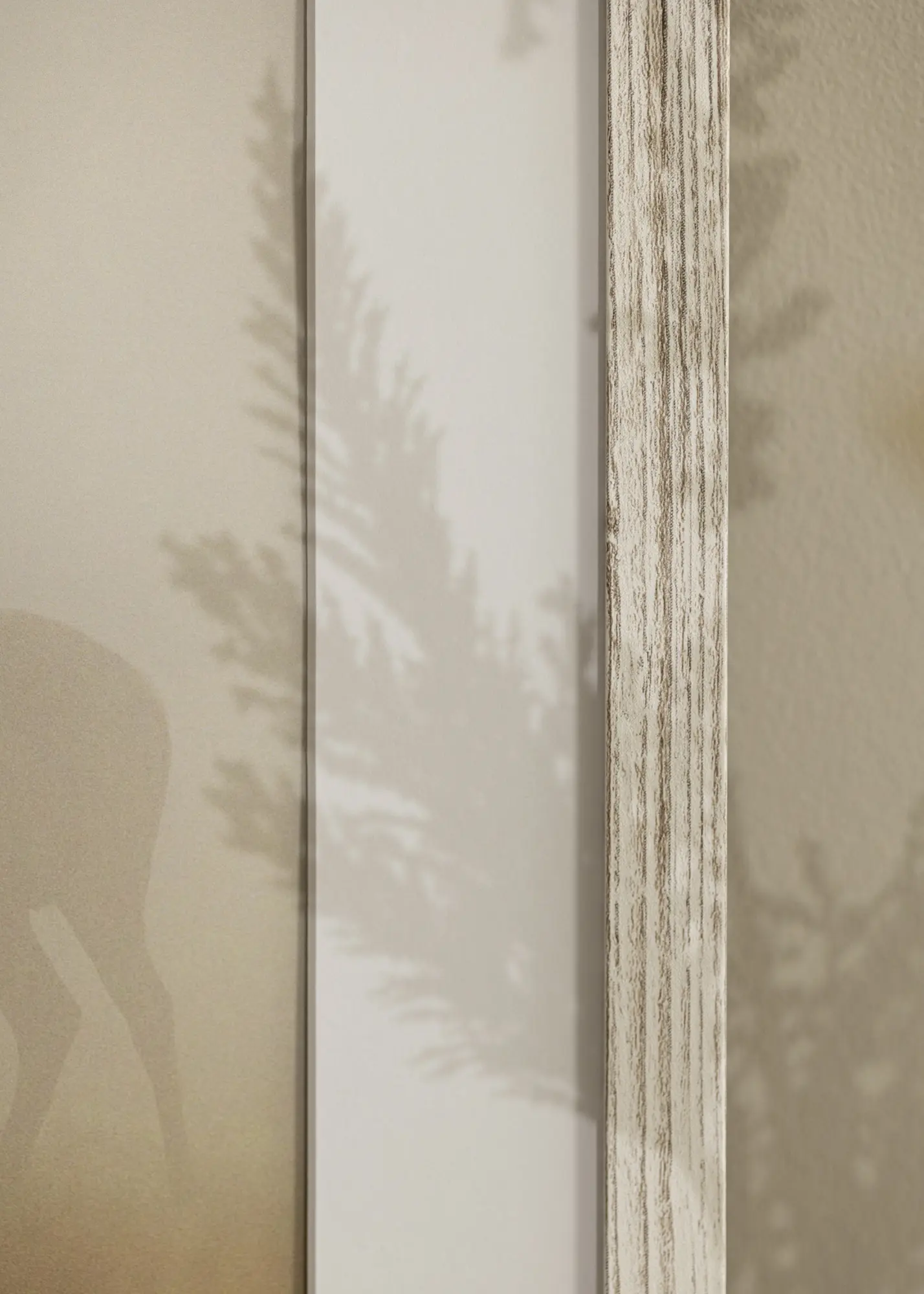 Tässä valokuvakehyksessä on ihastuttava vintage-henki. Valkoinen maali näyttää paikoin kuluneelta ja antaa kehykselle rustiikin ilmeen. Listan leveys on 20 mm ja syvyys 14 mm. Tässä mäntypuisessa kehyksessä on suojana aito lasi. Vintage White löytyy useassa eri koossa, joita voit yhdistellä upeaksi kokonaisuudeksi. Tähän kehykseen sopiva kuvakoko on 21x29,7 cm (A4).