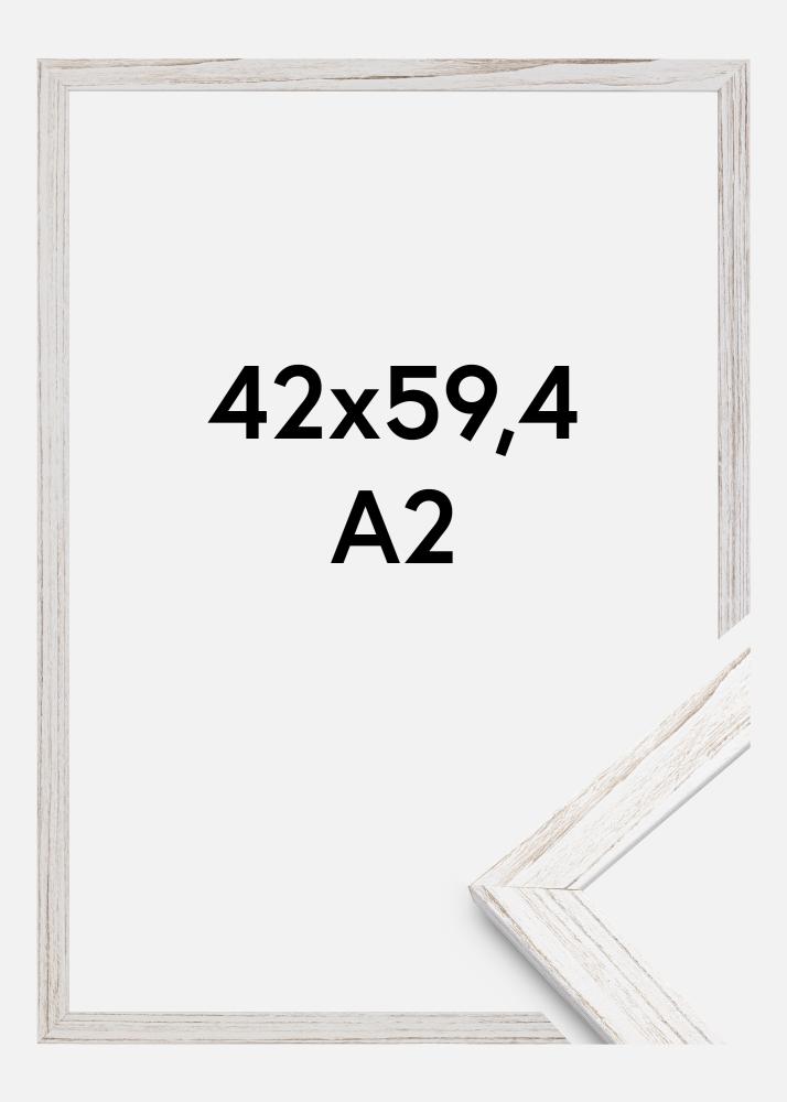 Tässä valokuvakehyksessä on ihastuttava vintage-henki. Valkoinen maali näyttää paikoin kuluneelta ja antaa kehykselle rustiikin ilmeen. Tässä mäntypuisessa kehyksessä on suojana aito lasi. Vintage White löytyy useassa eri koossa, joita voit yhdistellä upeaksi kokonaisuudeksi. Tähän kehykseen sopiva kuvakoko on 42x59,4 cm (A2).