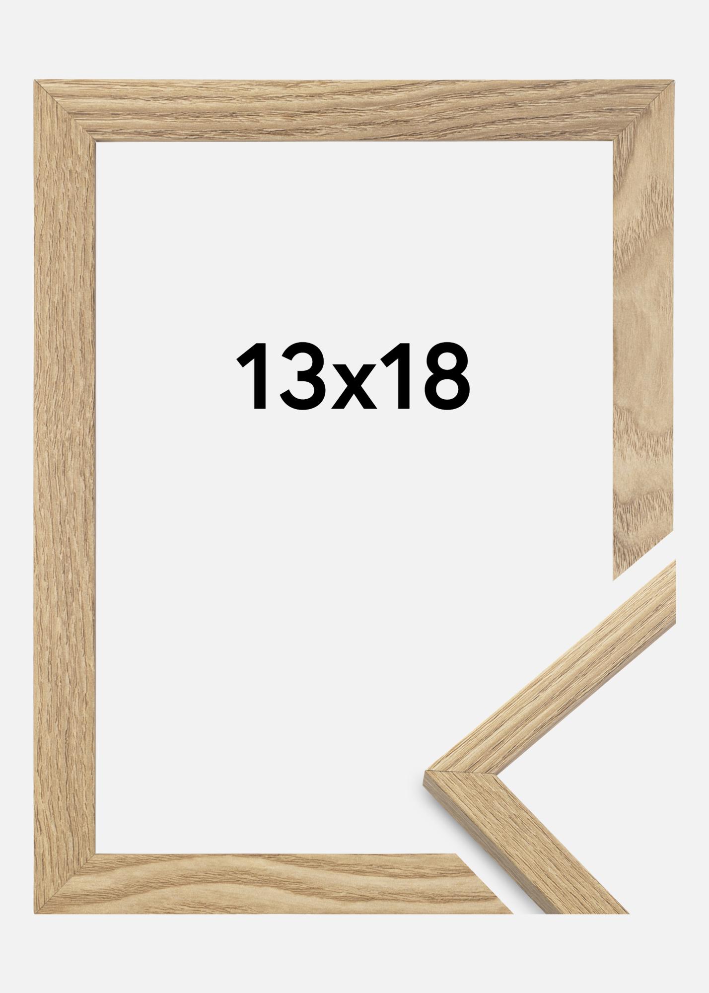 Tämän valokuvakehyksen valmistusmateriaalina on MDF kauniilla tammensävyisellä pinnalla. Suojalasina on käytetty aitoa lasia. Ainoastaan 14 mm leveä kehyslista antaa kehykselle tyylikkään ilmeen. Kehystäessä voit irrottaa takakappaletta helposti taipuvien niittien ansiosta.