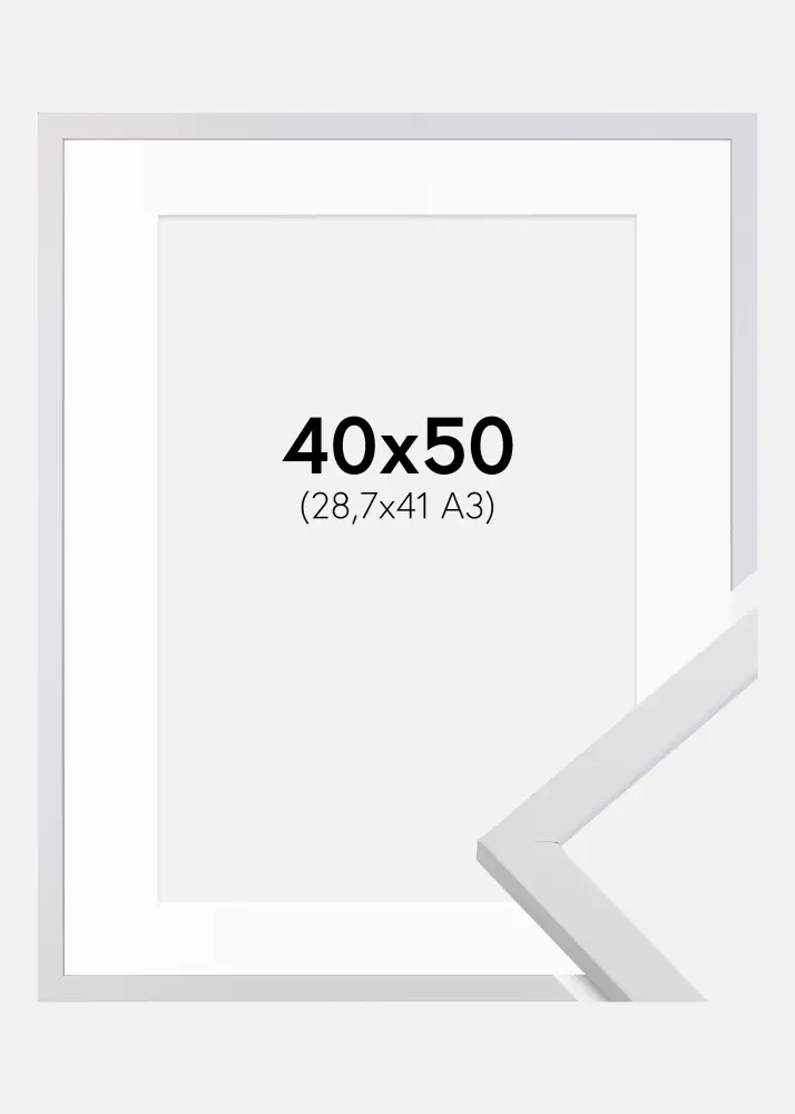 Kehys Trendy Valkoinen 40x50 cm - Passepartout Valkoinen 29,7x42 cm (A3)