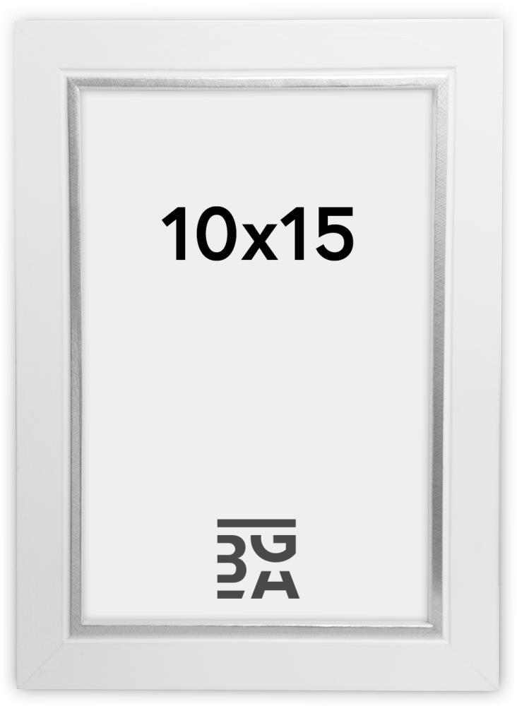 Ainutlaatuinen puinen valokuvankehys pienellä twistillä. Hopeanväriset sisäreunukset kuvan aiheen vieressä täydentävät valkoista kuvakehystä. Erinomainen valinta, kun kaipaat kehystä, joka tuo kuvasi aiheeseen ulottuvuutta.
