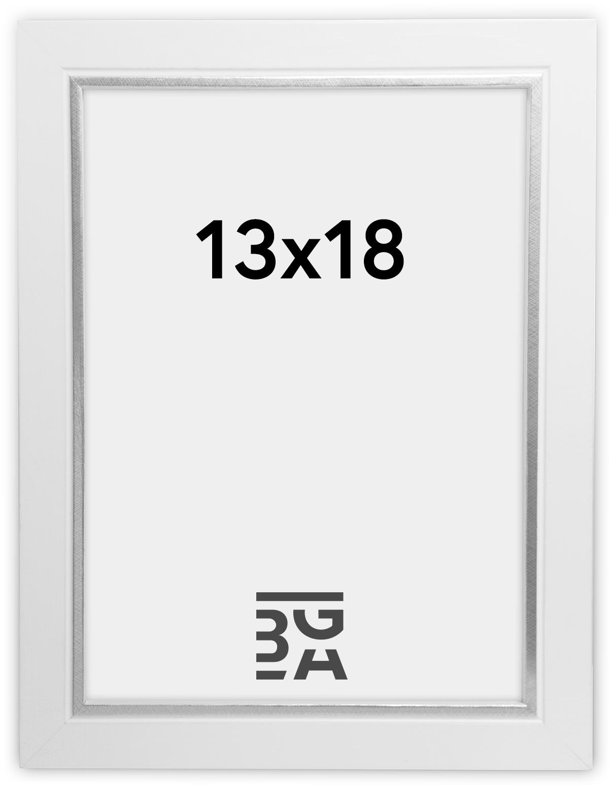 Ainutlaatuinen puinen valokuvankehys pienellä twistillä. Hopeanväriset sisäreunukset kuvan aiheen vieressä täydentävät valkoista kuvakehystä. Erinomainen valinta, kun kaipaat kehystä, joka tuo kuvasi aiheeseen ulottuvuutta.