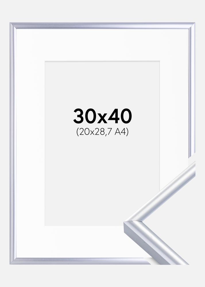 Kehys Victoria Hopea 30x40 cm - Passepartout Valkoinen 21x29,7 cm (A4)