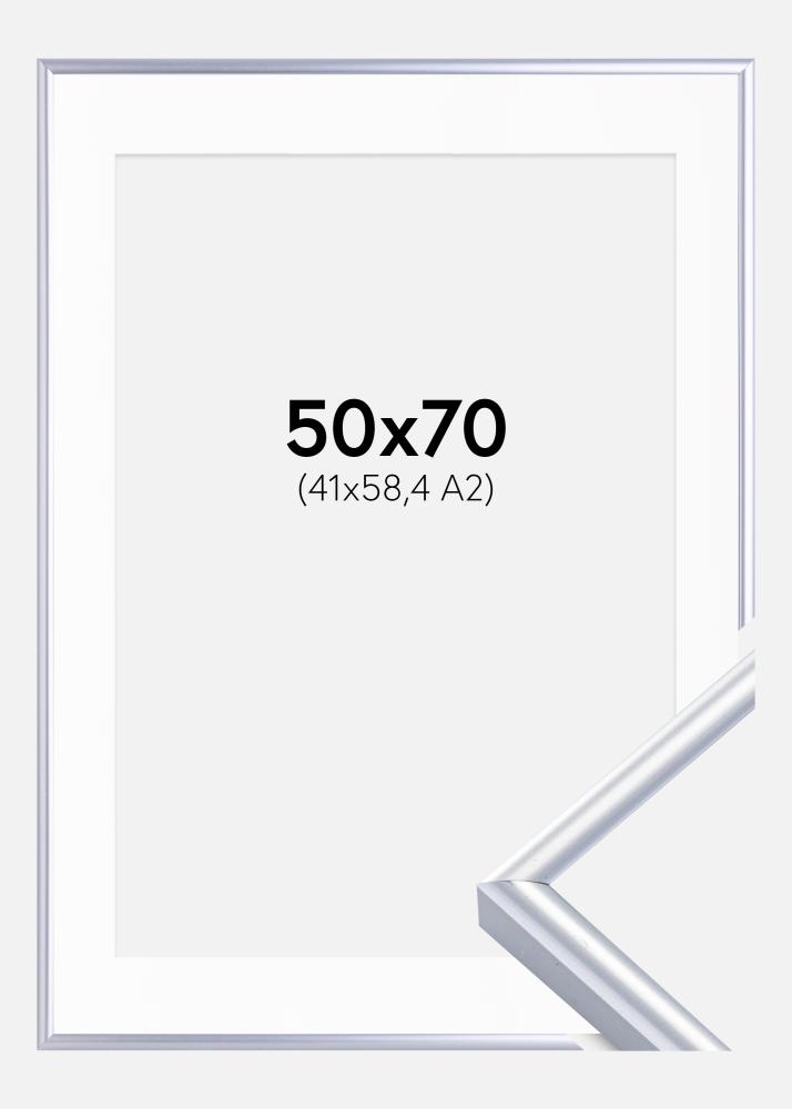 Kehys Victoria Hopea 50x70 cm - Passepartout Valkoinen 42x59,4 cm (A2)