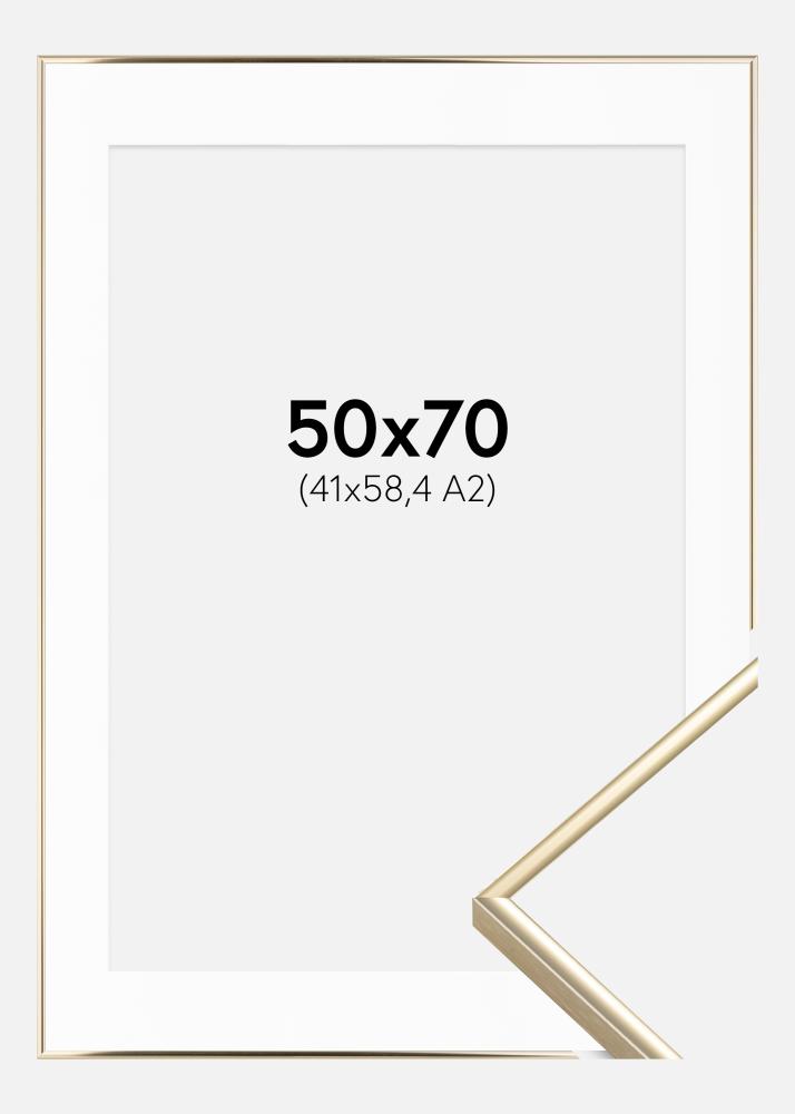 Kehys Visby Kiiltävä Kulta 50x70 cm - Passepartout Valkoinen 42x59,4 cm (A2)