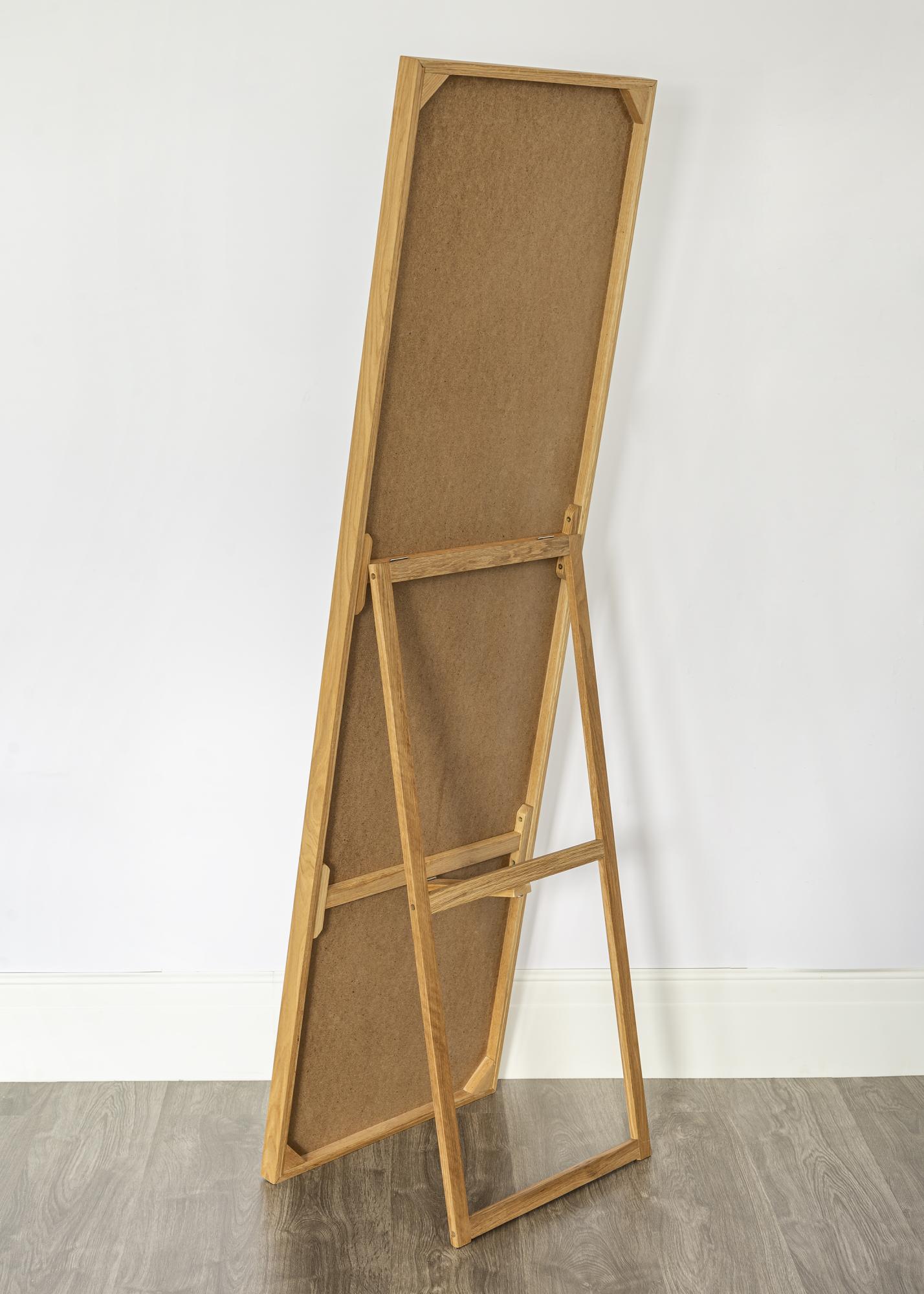 Peilin muotoilu on yksinkertainen ja tyylikäs, samalla kun se on oikein käytännöllinen. Peilissä on nimittäin takana tukijalka jonka avulla se voi seistä vapaasti lattialla.