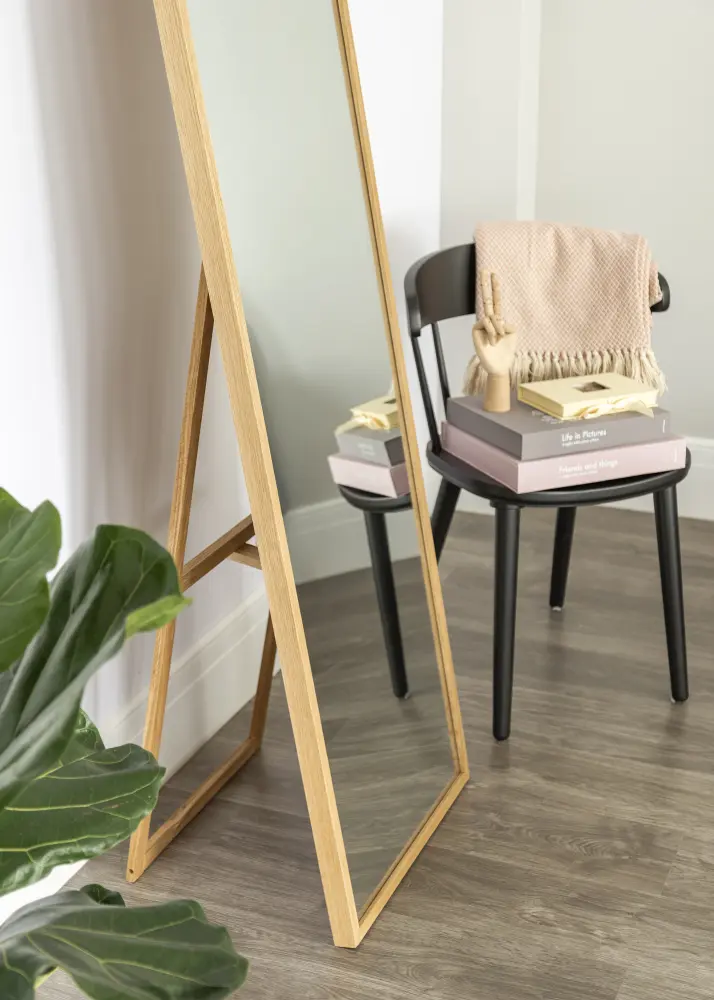 Tämä moderni lattiapeili tulee tanskalaisesta tavaramerkkistä Hübsch. Kehys on valmistettu massiivisesta tammesta ja siksi peili sopii erityisen hyvin kotiin jossa halutaan luoda lämmin ja luonnonläheinen tunnelma.