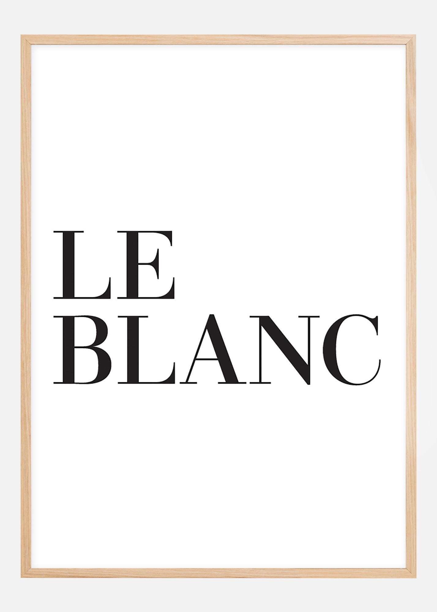 Yksinkertainen ja tyylikäs tekstijuliste sanomalla "Le blanc", Valkoinen. Juliste, joka sopii erinomaisesti moderniin ja minimalistiseen kotiin ja on täydellinen osa suurempaa kollaasia.