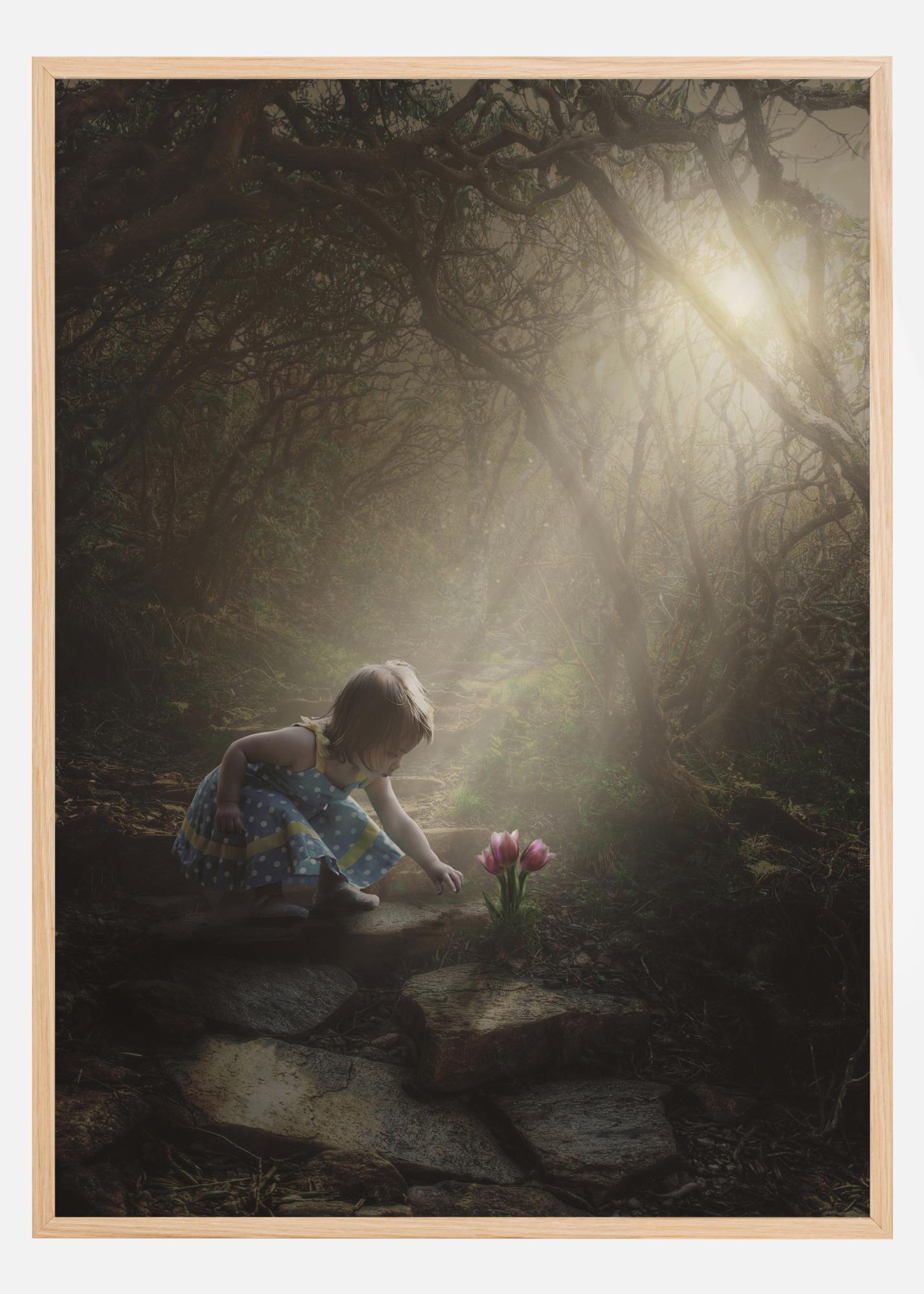 Kaunis graafinen taide vie sinut satumaiseen maailmaan sen taianomaisen valon, lumoavan metsän ja pienen tytön tutkimusmatkalla seikkailun kautta. Unenomainen juliste, joka vain paranee suuremmaksi tultuaan.