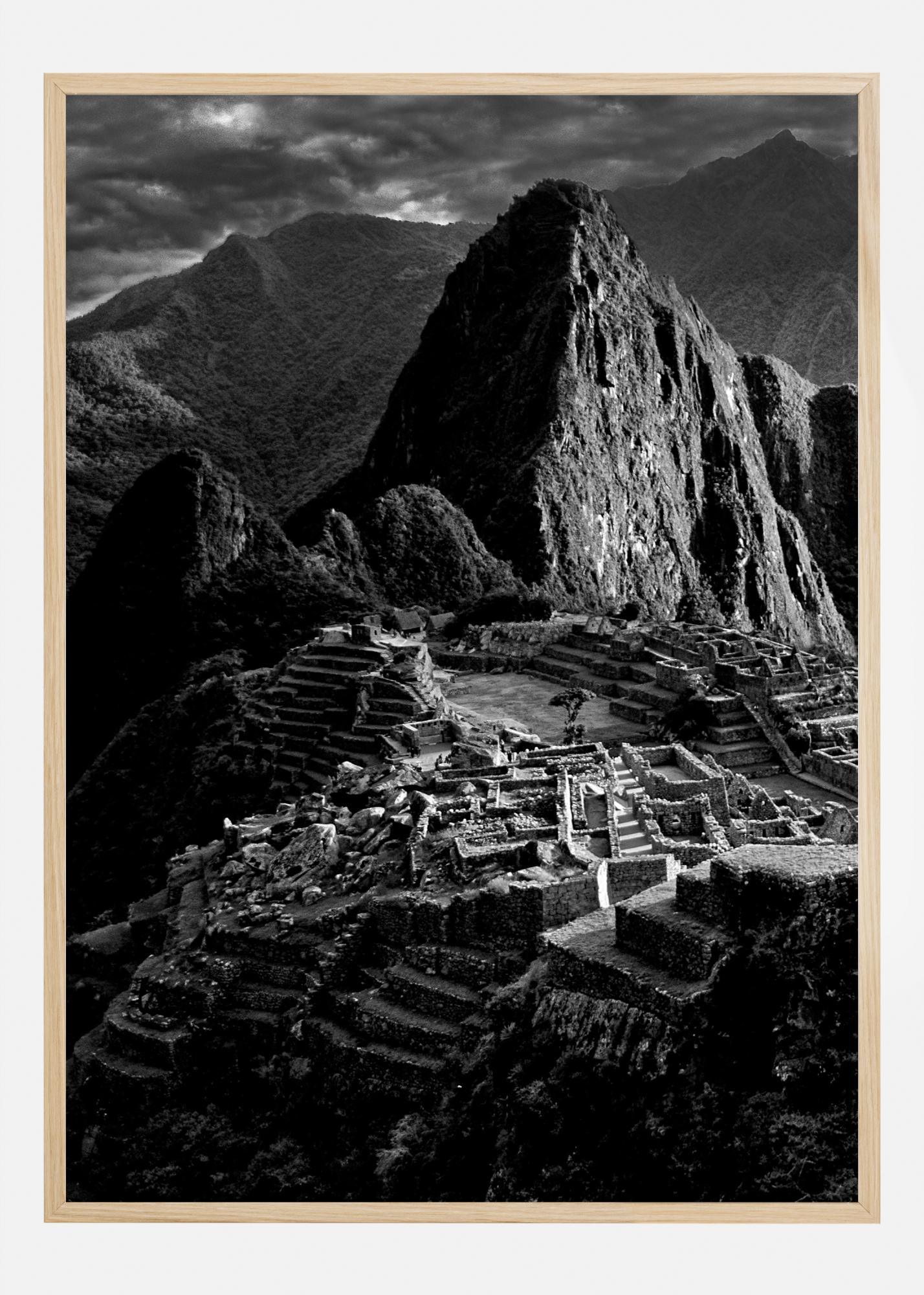 Kiehtova mustavalkopainatus Inkojen kadonneesta kaupungista. Upea näkymä raunioista vie mielikuvituksesi ajassa taaksepäin. Mustavalkoinen horisontti korostaa luonnollista valoa, joka paistaa tulosteen keskelle. Ripusta tämä maaginen ja salaperäinen vedos työhuoneeseesi ja ota askel ajassa taaksepäin.