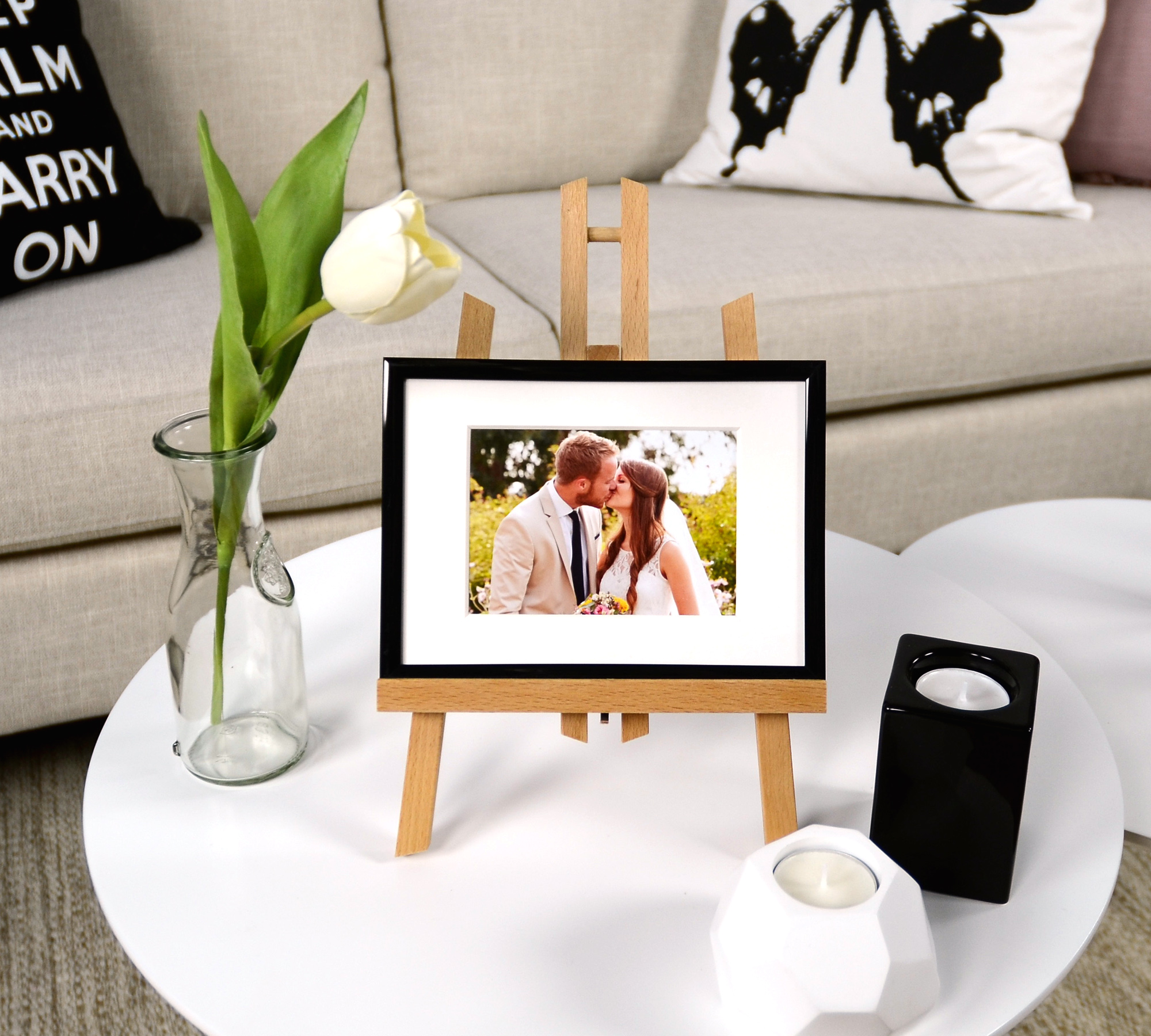 Hyvännäköinen puinen maalausteline, joka sopii hyvin hienoimmille kuvillesi. Se on täydellinen vaihtoehto, kun haluat kuvasi esiin helposti ilman, että niitä tarvitsee kiinnittää seinälle.