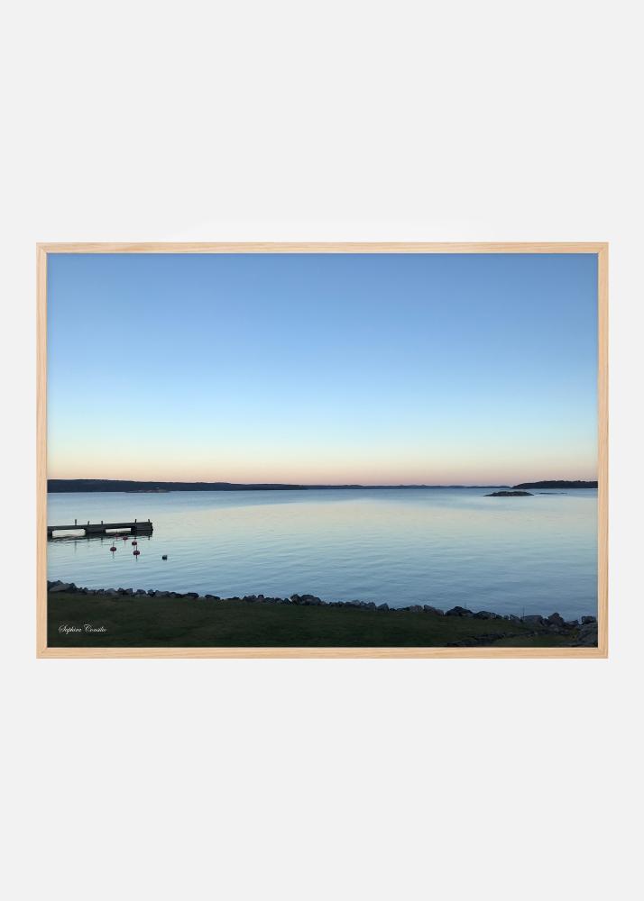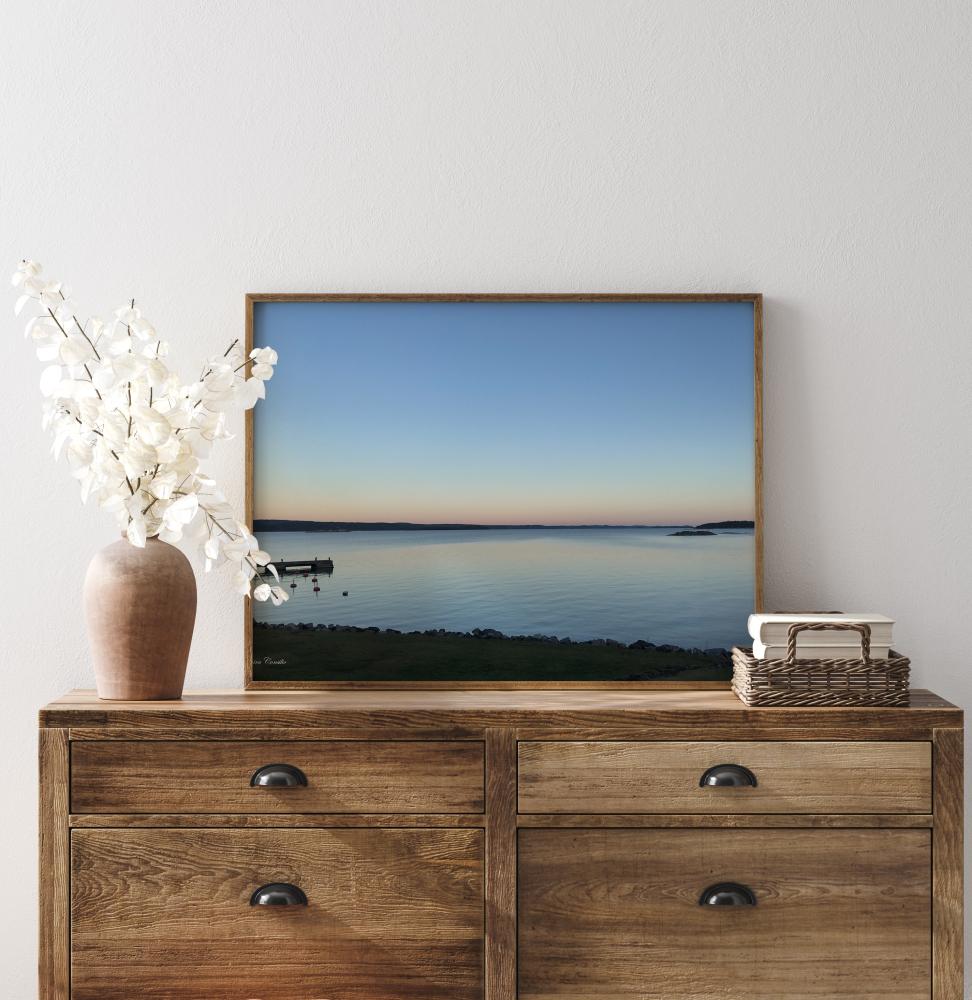Fotografinen julisteet Ruotsin saaristosta sen saarineen ja luotoineen kauniissa auringonlaskussa. Laituri sen viereisten kellukkeiden kanssa tuo kuvan eloon. Ihastuttavan rauhoittava julisteet, jonka on luonut valokuvaaja Saphira Consilio.