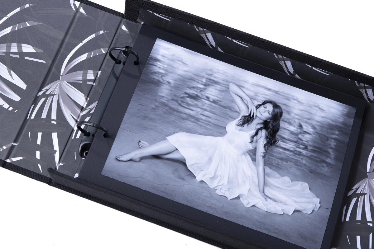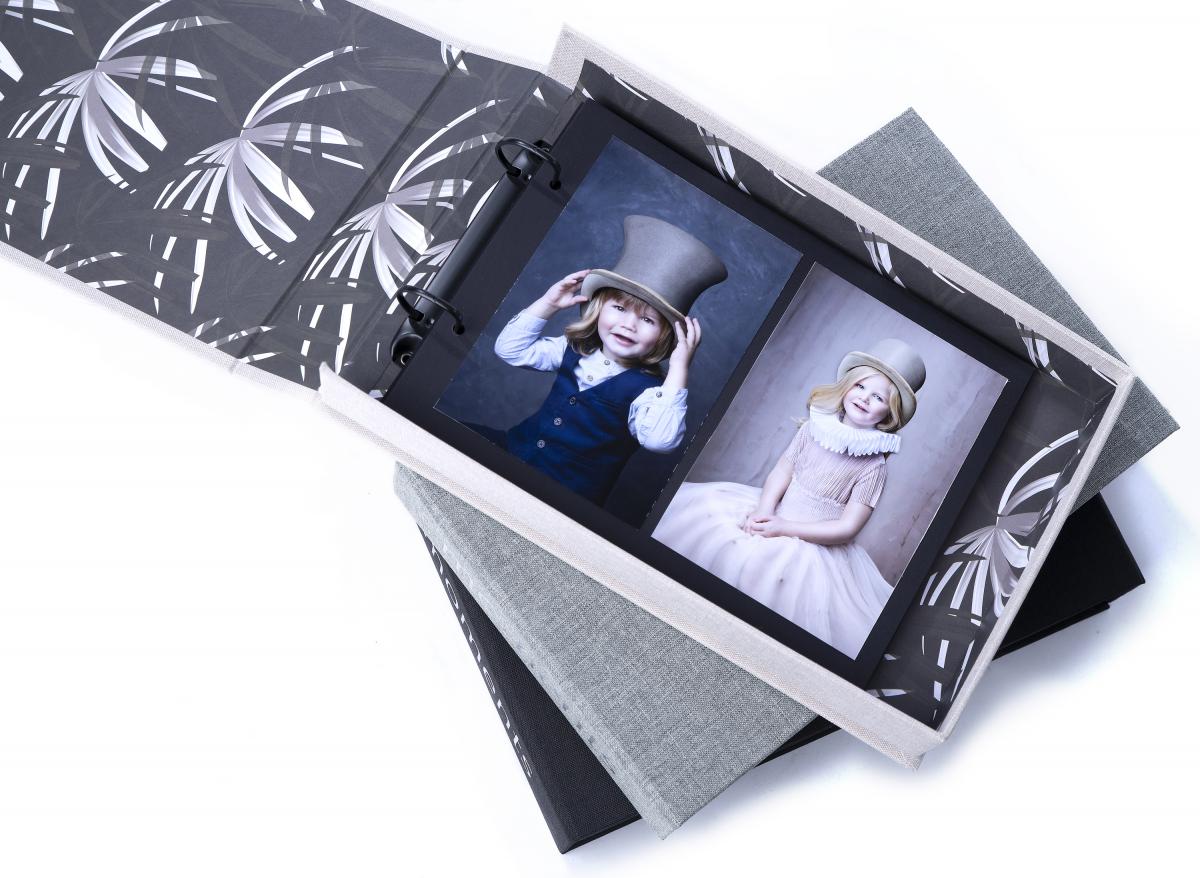 Albumi on kierrakansio jossa on 15 mustaa, hapotonta kartonkilehteä (30 sivua). Jokaiselle sivulle sopii yksi kuva maksimikoossa 15x20 cm.