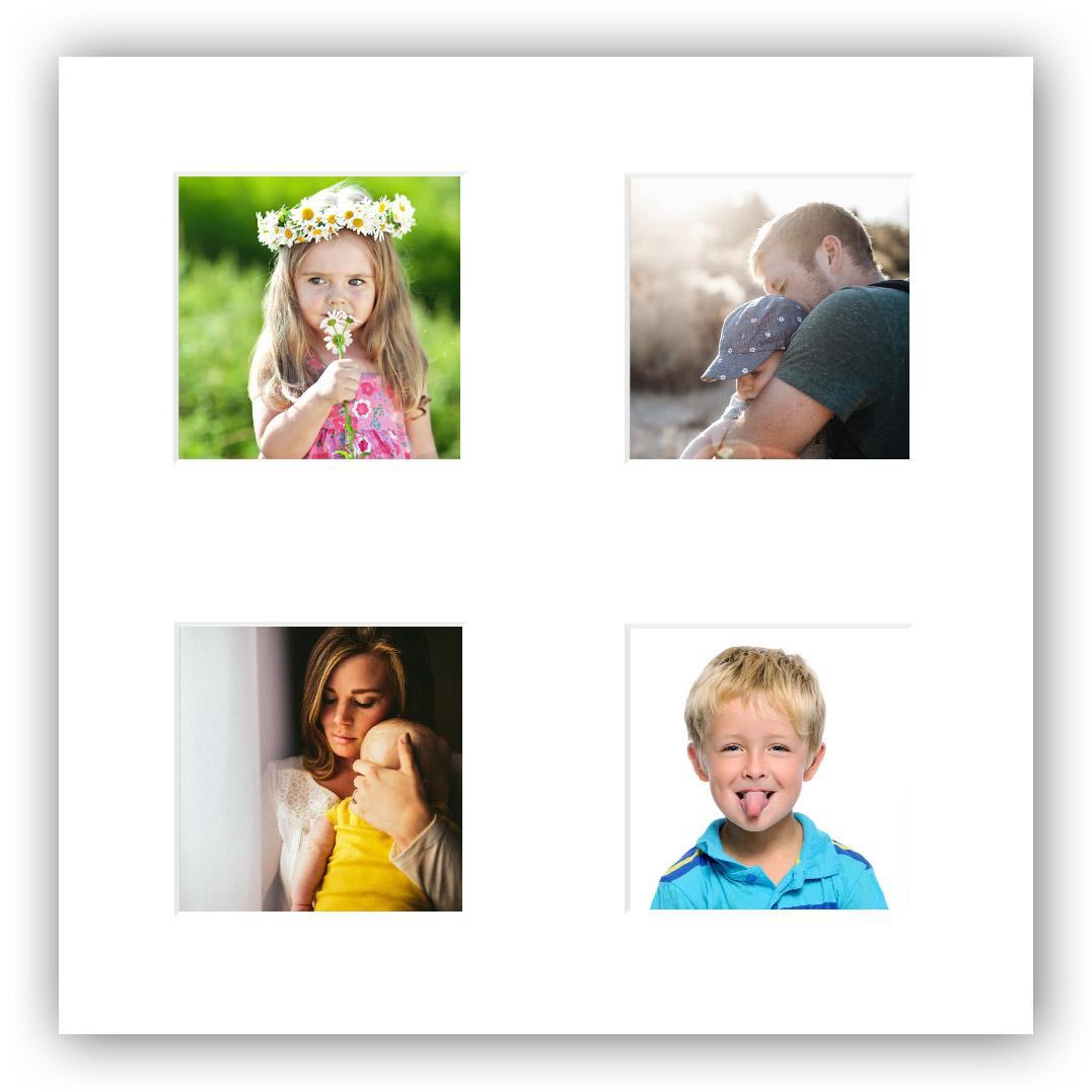 Paspatuuri Valkoinen 24x24 cm - Kollaasi 4 kuvalle (9x9 cm) (24x24 cm)