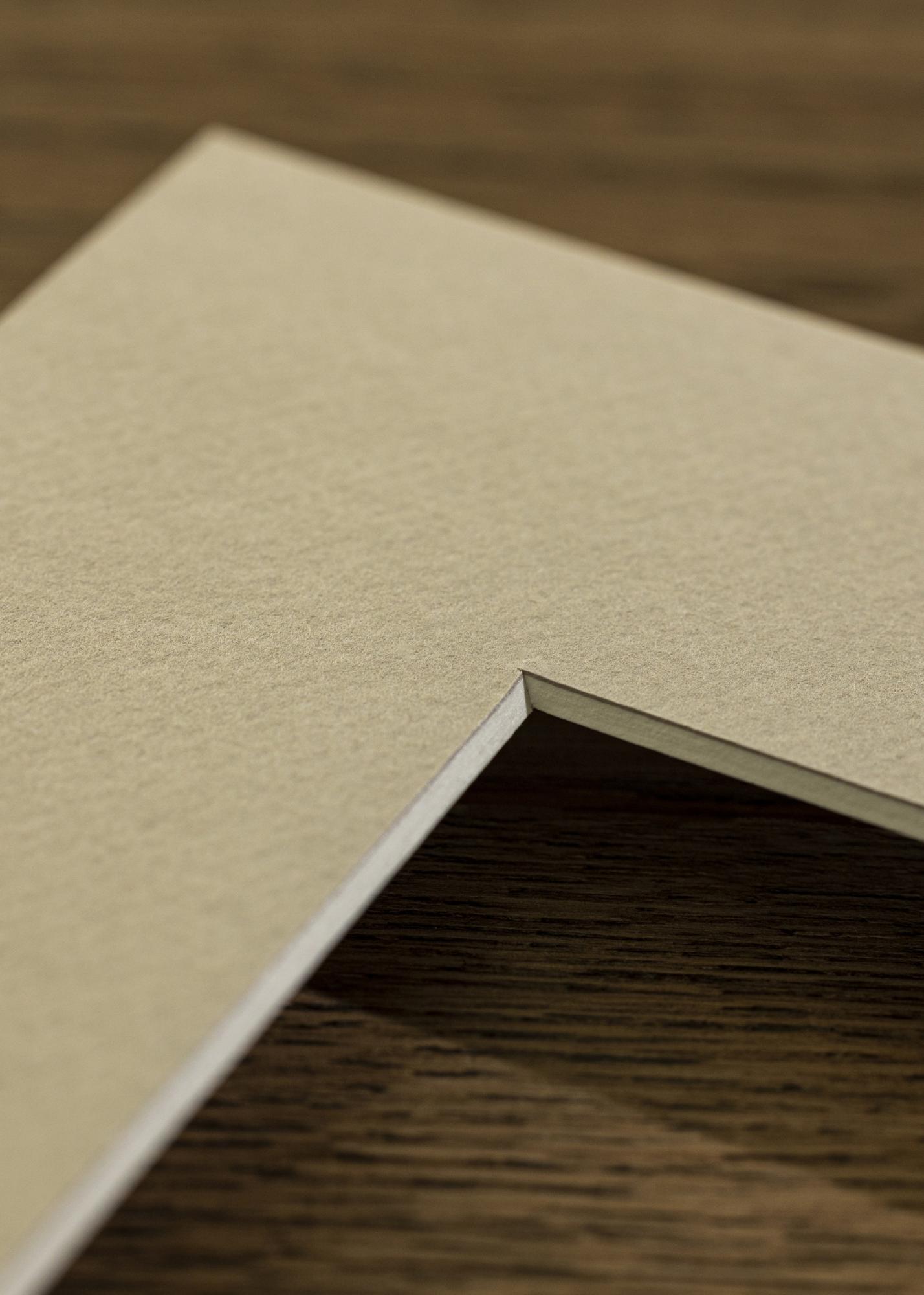 Yksi tämän paspartuun ainutlaatuisista ominaisuuksista on sen vino leikattu sisäreuna, jossa on valkoinen ydin. Tämä muotoilu luo tyylikkään kontrastiefektin ja antaa kehystykseen syvyyttä, mikä edelleen korostaa aiheen ilman että se ottaa liikaa huomiota. Materiaalin hienorakenteinen pinta tuo mukanaan hienostuneen ilmeen, tehden tästä paspartuusta erinomaisen valinnan kaikenlaisille esityksille.