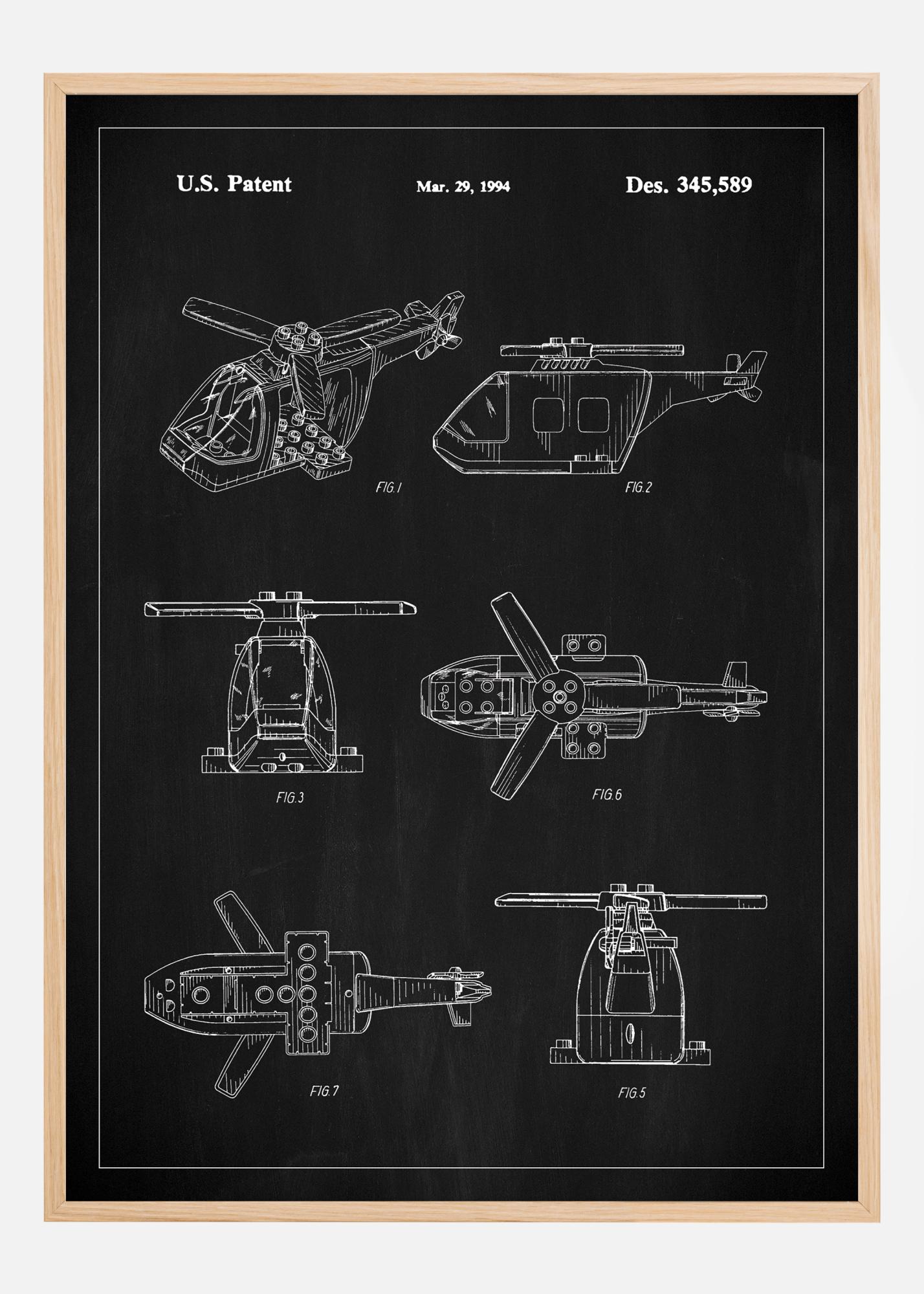 Tämä patenttijuliste esittelee yksityiskohtaisen työn Legon helikopterisuunnittelun takana, jota suojaa Yhdysvaltain designpatentti Des. 345,589, myönnetty 29. maaliskuuta 1994. Juliste näyttää sarjan teknisiä piirustuksia eri kulmista, jotka vangitsevat ajoneuvon dynaamisen ja monimutkaisen luonteen. Se on insinöörityön ja aerodynamiikan hienouksien esitys ja kunnianosoitus niille, jotka edistävät ilmailutekniikan kehitystä.