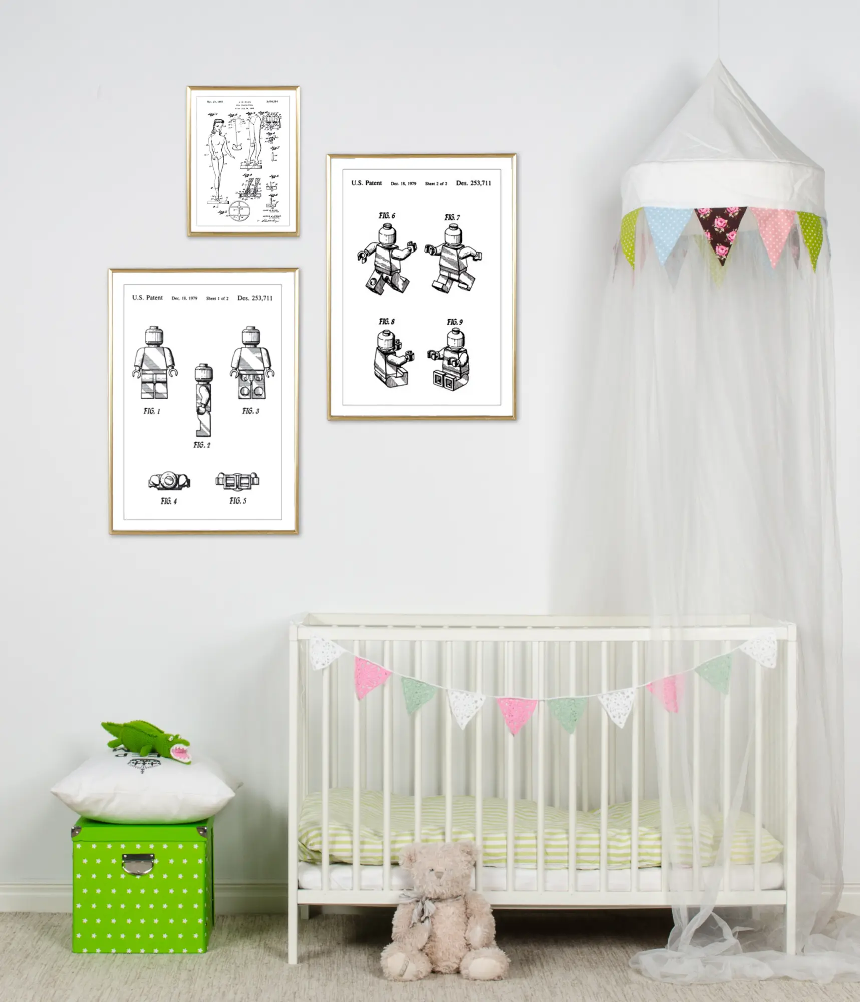 Tämä erottuva patenttijuliste paljastaa Barbie-nuken rakenteen, jolle myönnettiin patentti 21. marraskuuta 1961 numerolla 3,009,284. JW Ryanin keksimä ja 24. heinäkuuta 1959 jätetty hakemus paljastavat piirustuksessa nuken ainutlaatuiset osat ja liitännät, kiehtova esimerkki 1900-luvun puolivälin lelusuunnittelusta ja innovaatiosta. Juliste on ensiluokkainen keskustelunaihe, joka sopii täydellisesti keräilijöille tai leikkisäksi sisustuselementiksi luovaan tilaan.