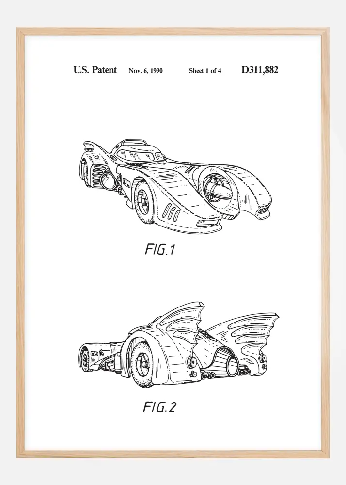 Patenttipiirustus - Batman - Batmobile 1990 I Juliste