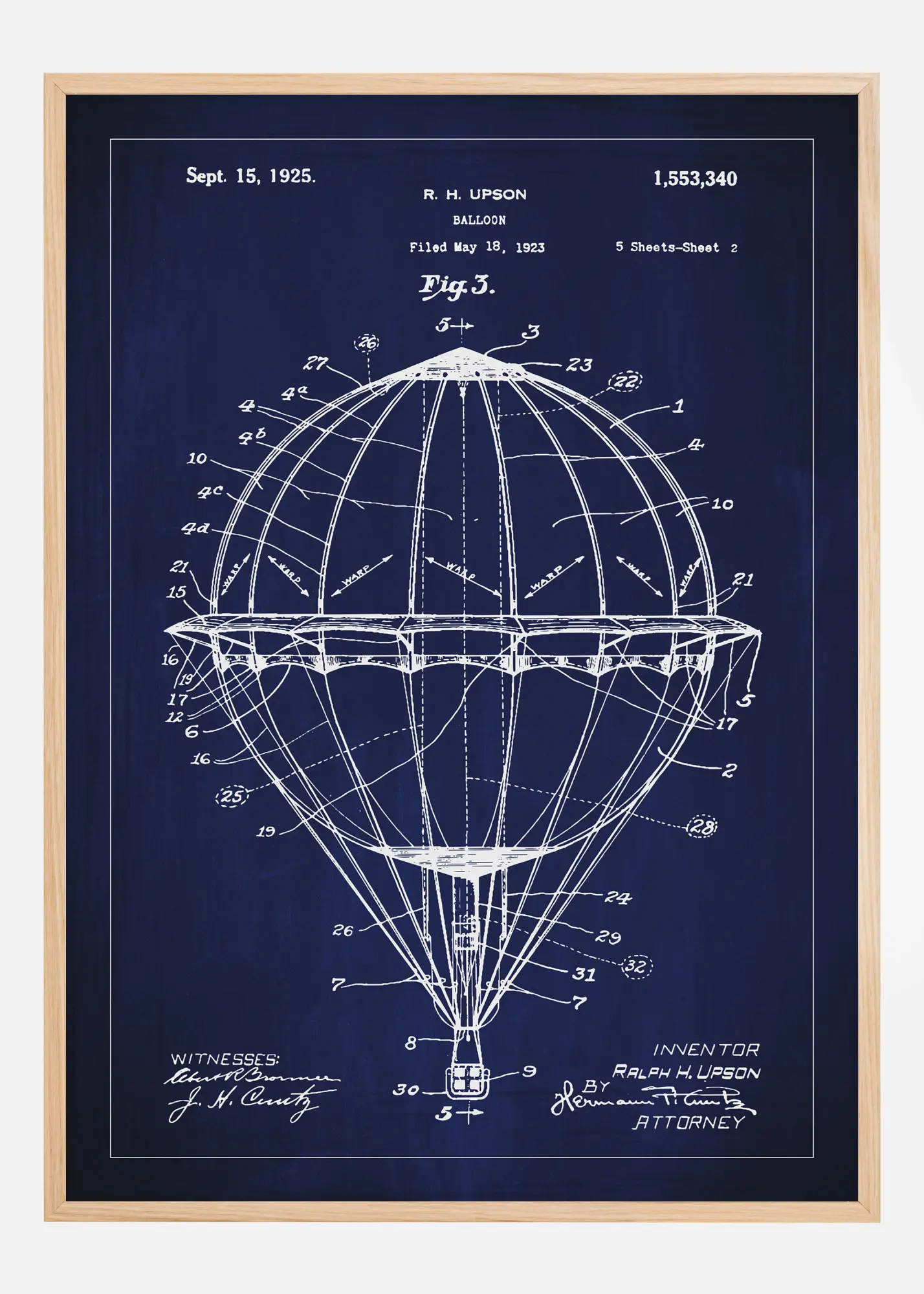 Patenttipiirustus - Kuumailmapallo - Sininen Juliste