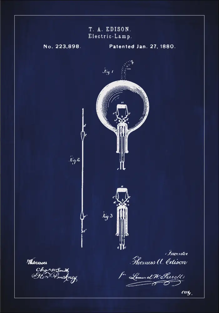 Edisonin sähkölamppu ei edusta ainoastaan mullistavaa teknistä saavutusta, vaan on myös innovaatioiden ja edistyksen symboli. Tämä patenttijuliste inspiroi varmasti keskustelua ja uteliaisuutta kaikissa, jotka sitä katsovat, ja se on täydellinen lahja niille, jotka ovat kiinnostuneita tieteen historiasta tai haluavat kunnioittaa ihmisen luovaa henkeä. Klassisen ulkonäkönsä ja ajattoman viehätyksensä ansiosta tämä patenttikaavio on arvokas lisä sekä moderniin että perinteiseen sisustukseen.