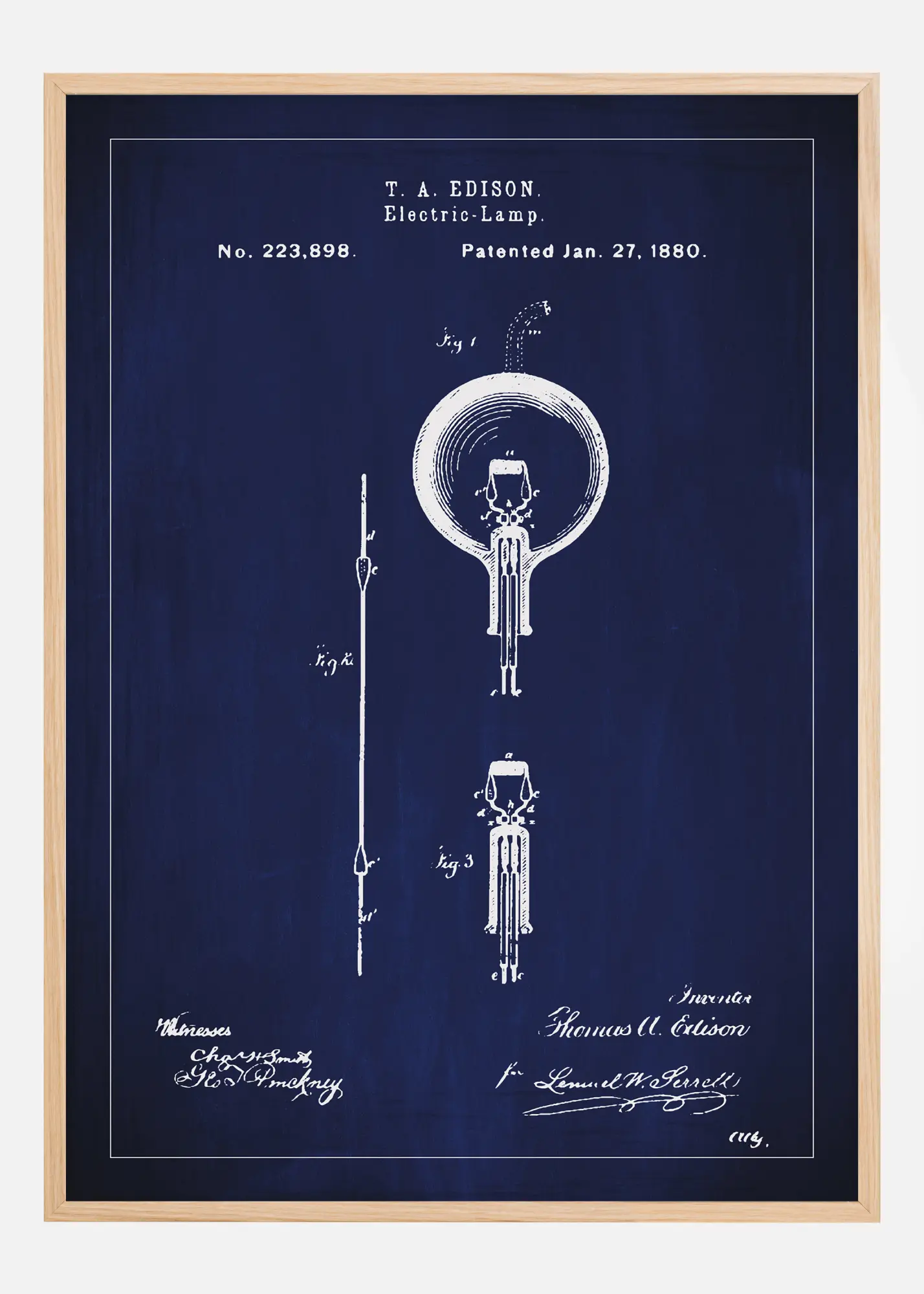 Koe uudelleen monumentaalinen hetki historiassa Thomas A. Edisonin sähkölampun patenttiposterillamme, ikoninen keksintö, joka on valaissut maailmaa siitä lähtien, kun patentti myönnettiin 27. tammikuuta 1880 numerolla 223,898. Tämä patenttikaavio tarjoaa yksityiskohtaisen katsauksen Edisonin alkuperäiseen lampun suunnitteluun ja rakenteeseen, ja se lisää teollisen ja historiallisen tunteen mihin tahansa huoneeseen. Posterin rohkeat linjat ja selkeys tekevät siitä elegantin lisäyksen kokoelma seinälle tai erillisenä taideteoksena.