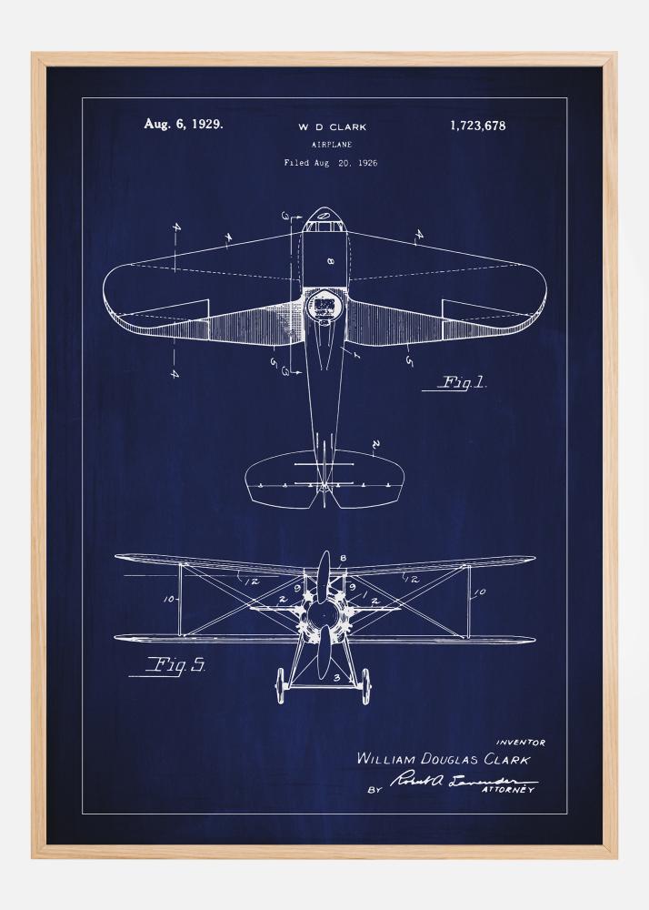 Patenttipiirustus - Lentokone - Sininen Juliste