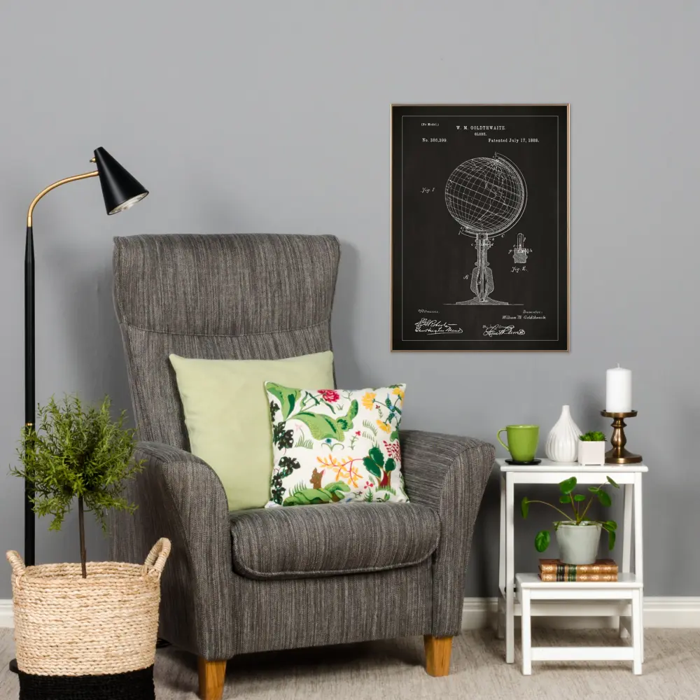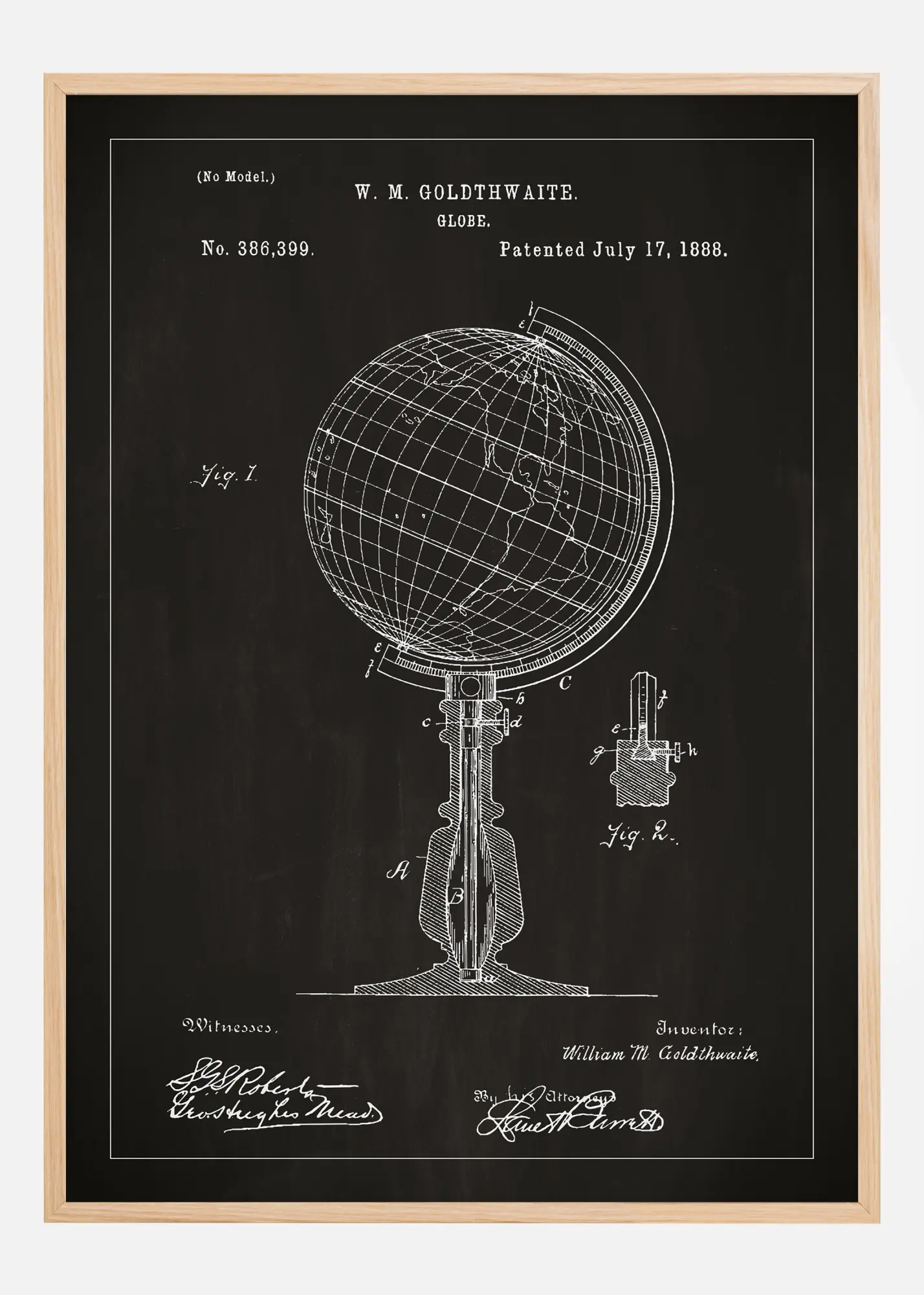 Tämä patenttijuliste esittää W. M. Goldthwaiten suunnitteleman klassisen maapallon, yksityiskohtaisen luomuksen, joka ikuistettiin patenttinumerolla 386,399, 17. heinäkuuta 1888. Juliste vangitsee keksinnön eleganssin ja toiminnallisen kauneuden, esittäen maailman kaksiulotteisessa muodossa tavalla, joka inspiroi löytöihin ja tutkimuksiin. Sen tarkat viivat ja selkeys tekevät siitä erinomaisen opetustyökalun ja halutun sisustuselementin kaikille, jotka arvostavat maantiedettä ja maailmanhistoriaa.