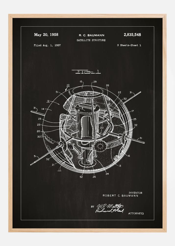 Terävät valkoiset viivat erottuvat syvää mustaa taustaa vasten, tarjoten kiehtovan vilauksen historiallisesta teknologiasta, ja tämä patenttijuliste on vaikuttava koriste-esine kaikille, jotka ovat intohimoisia avaruuden, tieteen ja historiallisen innovaation suhteen. Se on inspiroiva muistutus ihmiskunnan pyrkimyksestä tutkia oman planeettamme ulkopuolelle ja olisi näyttävä yksityiskohta missä tahansa huoneessa.