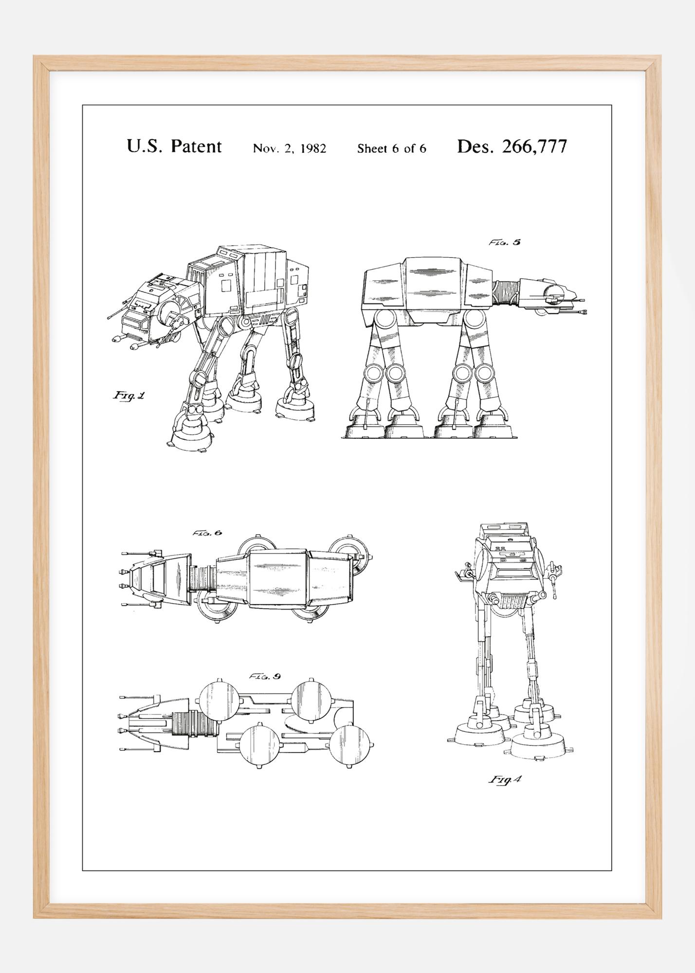 Patenttipiirustus - Star Wars - Walker - Valkoinen Juliste