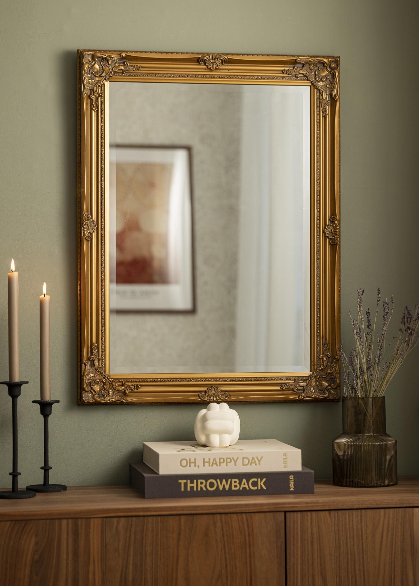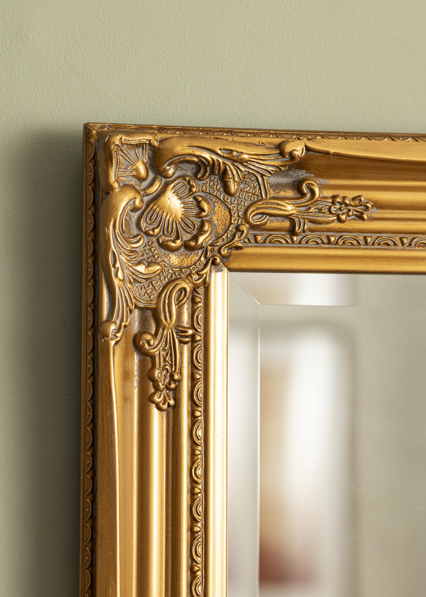 Peili Antique Kullanvärinen on perinteisten muotojen mukaisesti tehty seinäpeili. Siinä on kaunis klassinen puinen kehys, jonka viimeistelee kaunis klassinen kipsistä valettu koriste. Kehyksen kaunis yksityiskohta kiinnittää huomion.