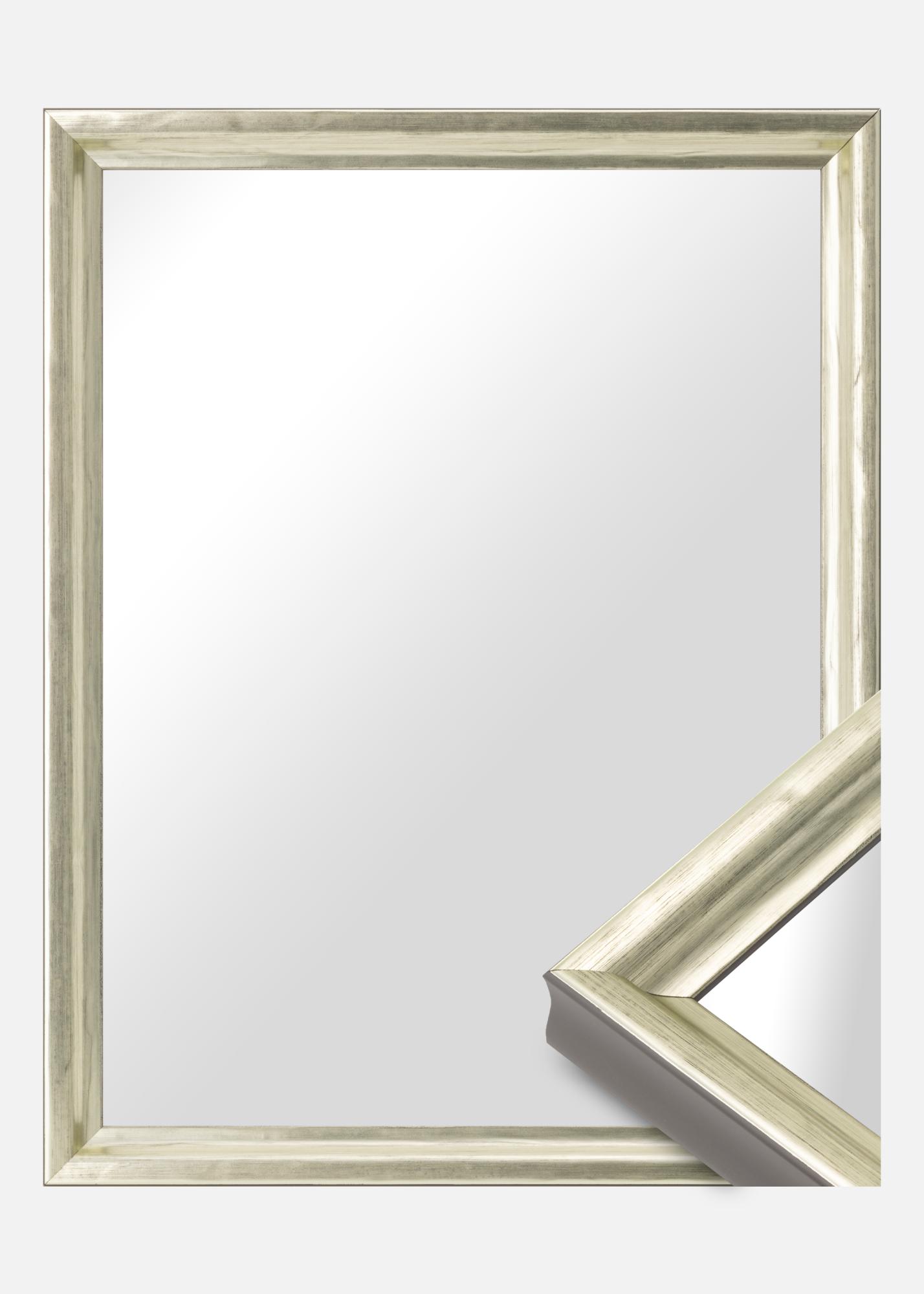 Antiikkihopean värinen peilikehys, joka taittaa aavistuksen kultaan. Tämä tuote on täydellinen valinta, kun etsit eleganttia, klassisen tyylistä peiliä.