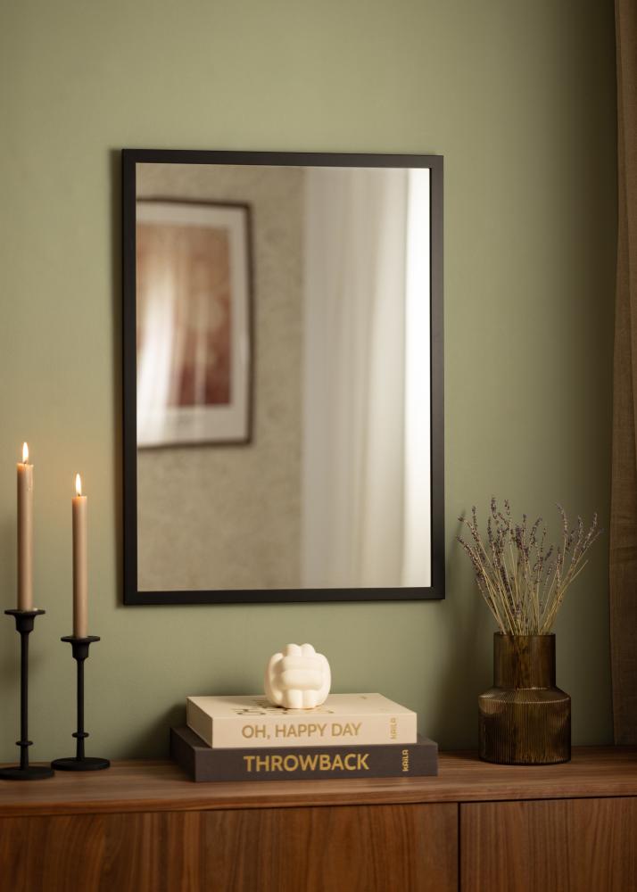 Peili, jossa tyylipuhdas musta puukehys