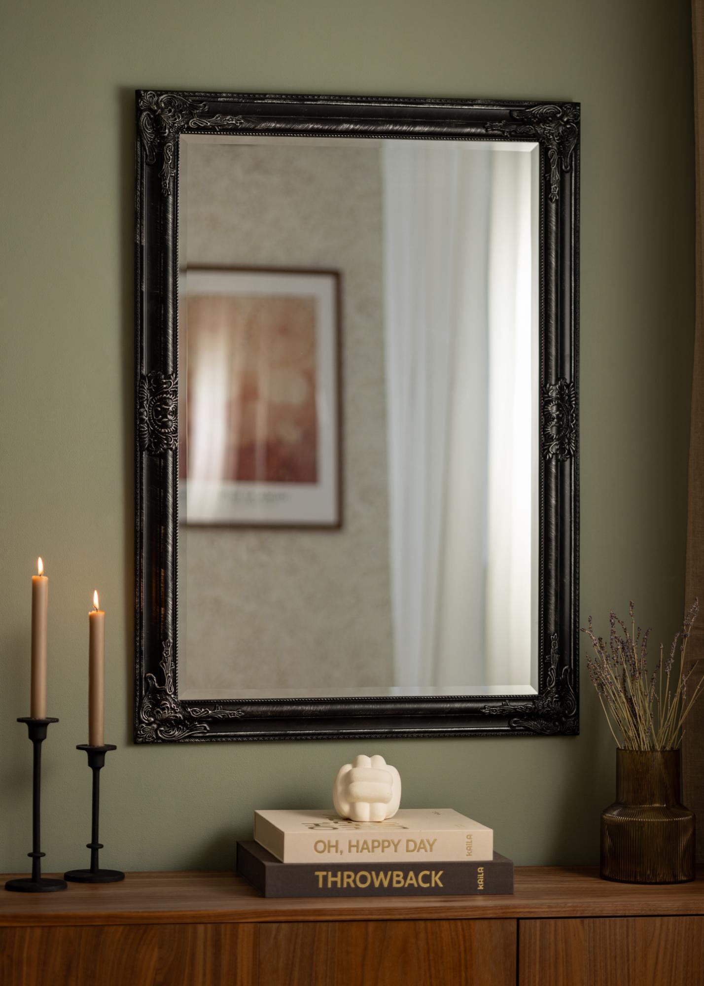 "Bologna Musta" -peilisarjassa on latinalainen muotoilu ja näyttävät koristeet kulmissa sekä reunusten keskikohdissa. Se on hieman ohuempi peilikehys kuin monet muut saman tyylisuuntauksen yksilöt. Kehys on valmistettu puusta, ja koristeet ovat kipsistä.