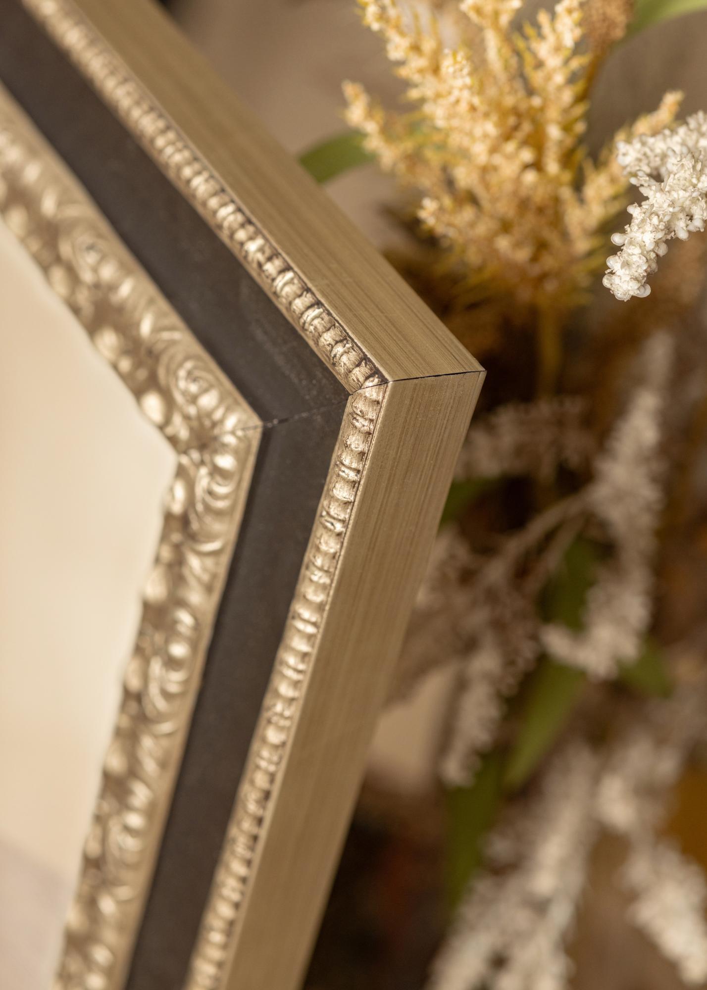 Drottningholm Hopeanvärinen on kaunis retrotyylinen peilikehys, joka on valmistettu Italiassa. Sen pinnassa ovat puunsyyt selkeästi näkyvillä ja peilin hopeansävyinen kehys on leveä, mikä antaa tuotteelle todella elegantin ilmeen.Peruutusoikeus ei koske tätä tuotettaPeruutusoikeus ei koske mittatilaustyönä tehtyjä tuotteita, sillä ne valmistetaan tilauksen tekemisen jälkeen. Koska kehykset on tehty pyydettyjen mittojen mukaisesti, ei niitä voida myydä edelleen mahdollisen palautuksen jälkeen.