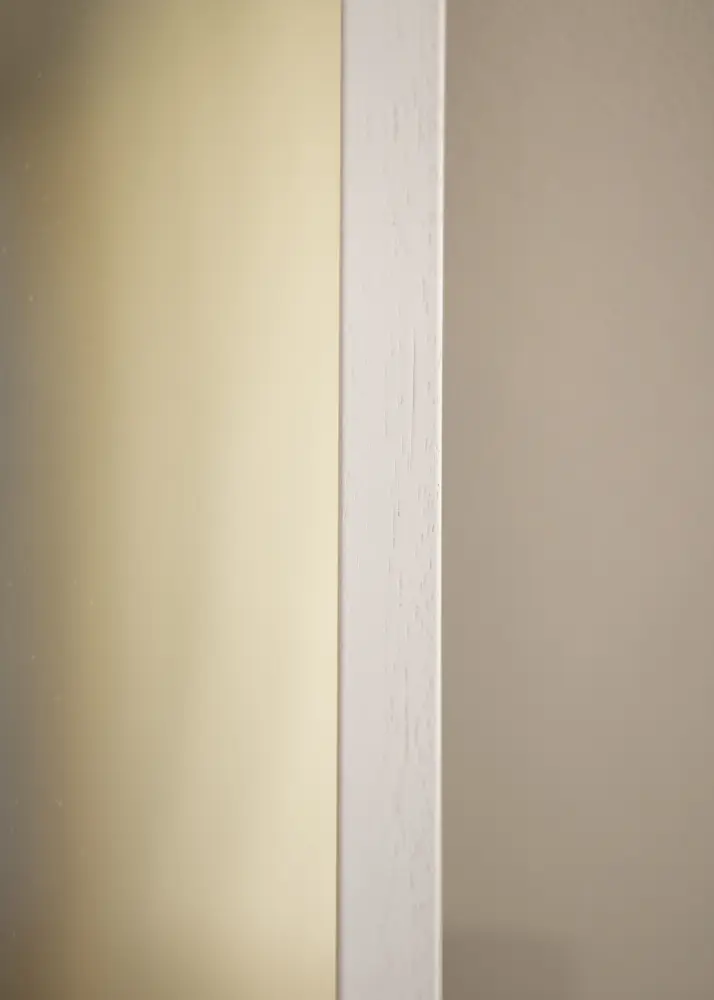 Gävle Valkoinen on tyylikäs puinen peilikehys, jonka 31 mm syvyys tuo peiliä hieman ulos seinästä.
