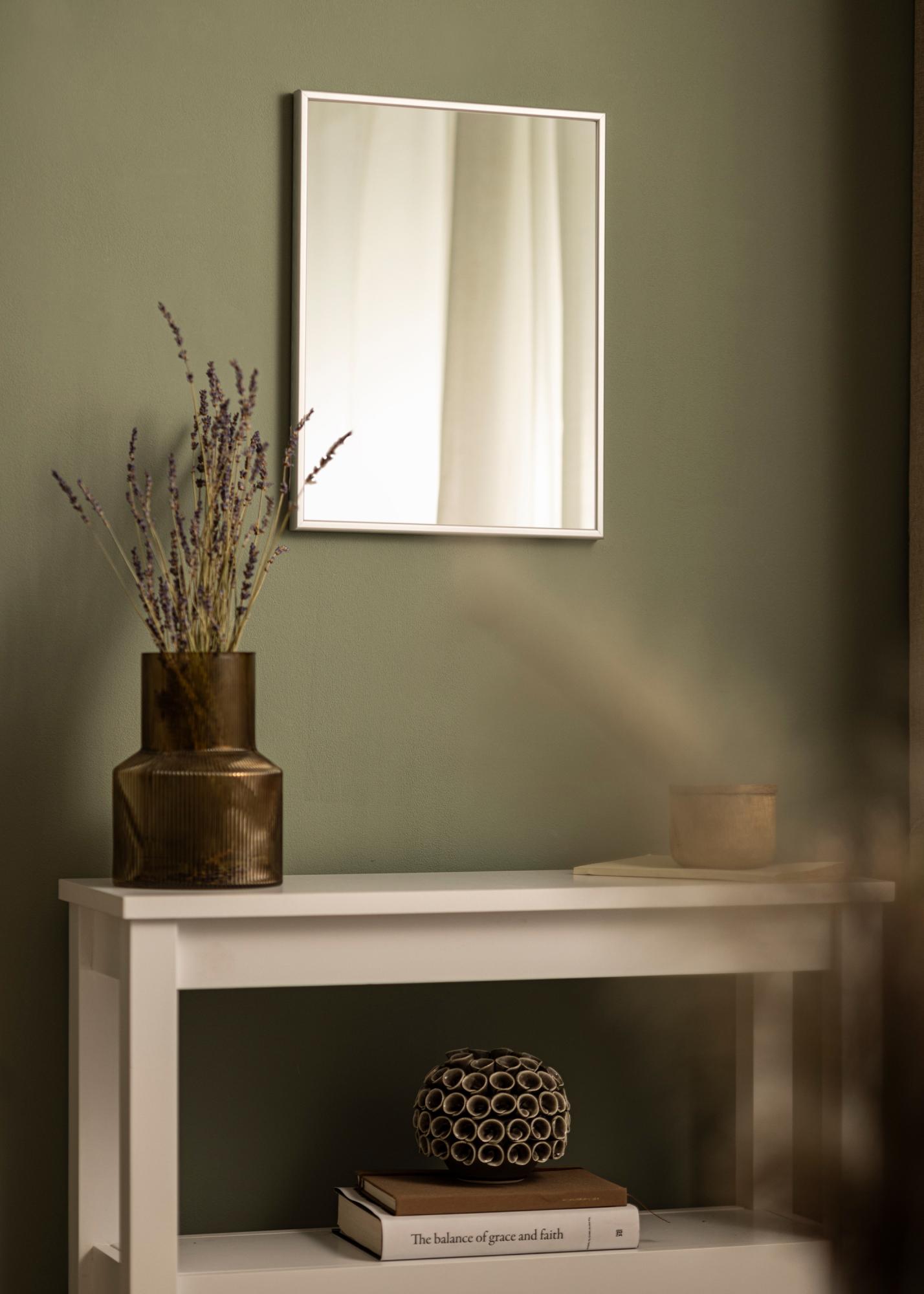 Köpenhamn Hopeanvärinen on yksinkertainen alumiinikehys, joka sopii täydellisesti, kun etsit huomaamatonta ja pelkistettyä peiliä.