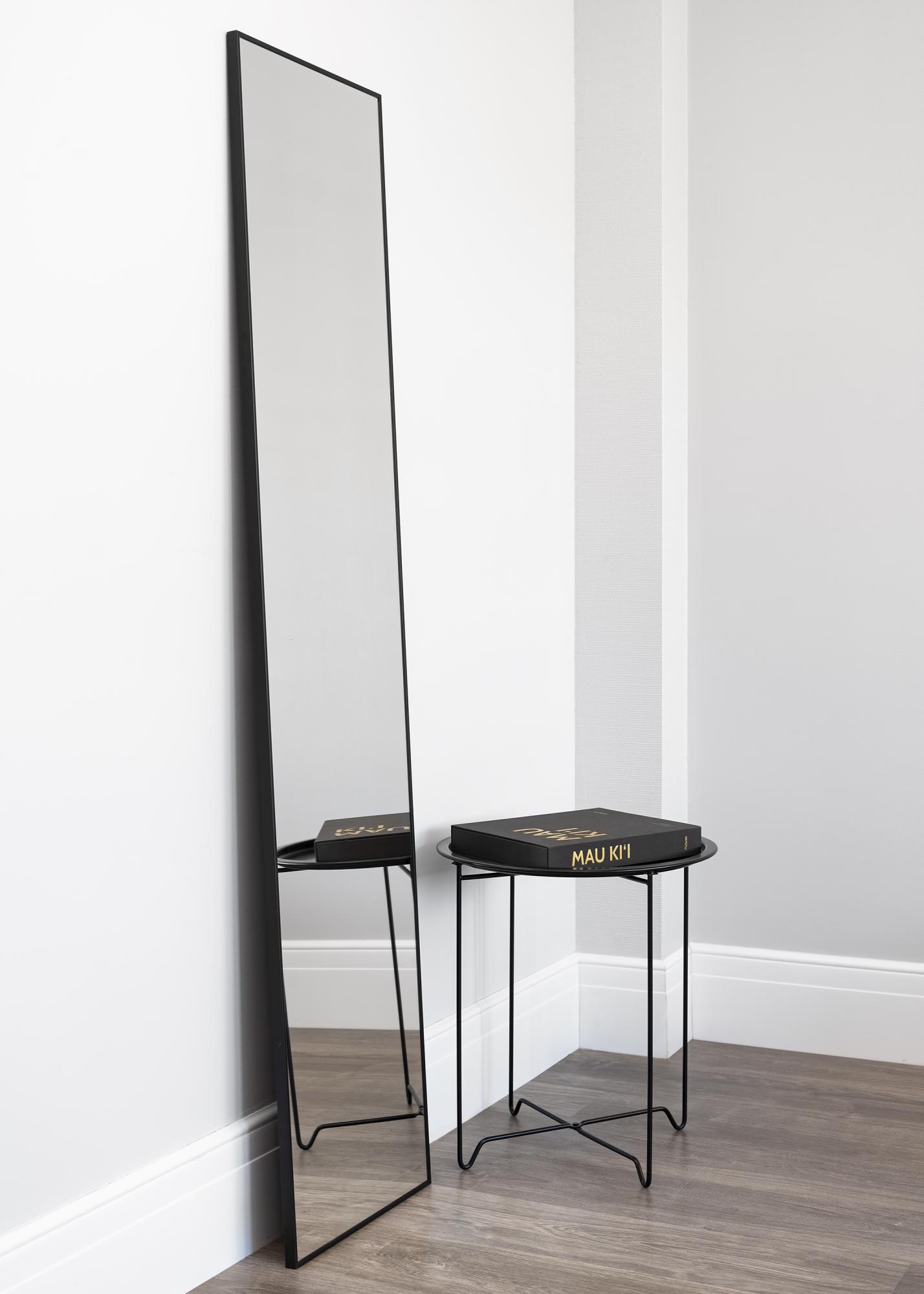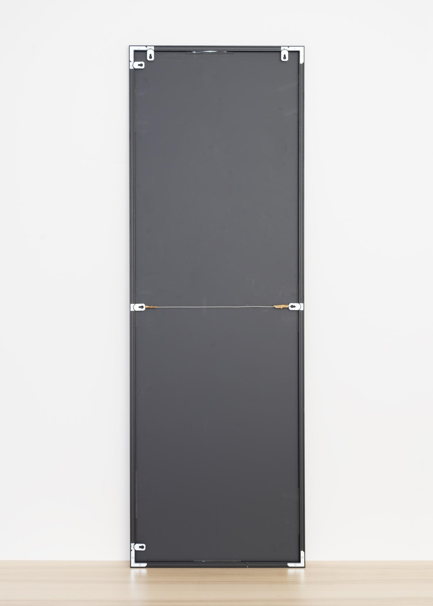 Kokovartalopeili, jossa on musta alumiinikehys ja peilipinta, jonka koko on 40 x 170 cm. Suuresta koostaan huolimatta peili on helppo kiinnittää seinälle käytännöllisten seinäkiinnikkeiden ansiosta.