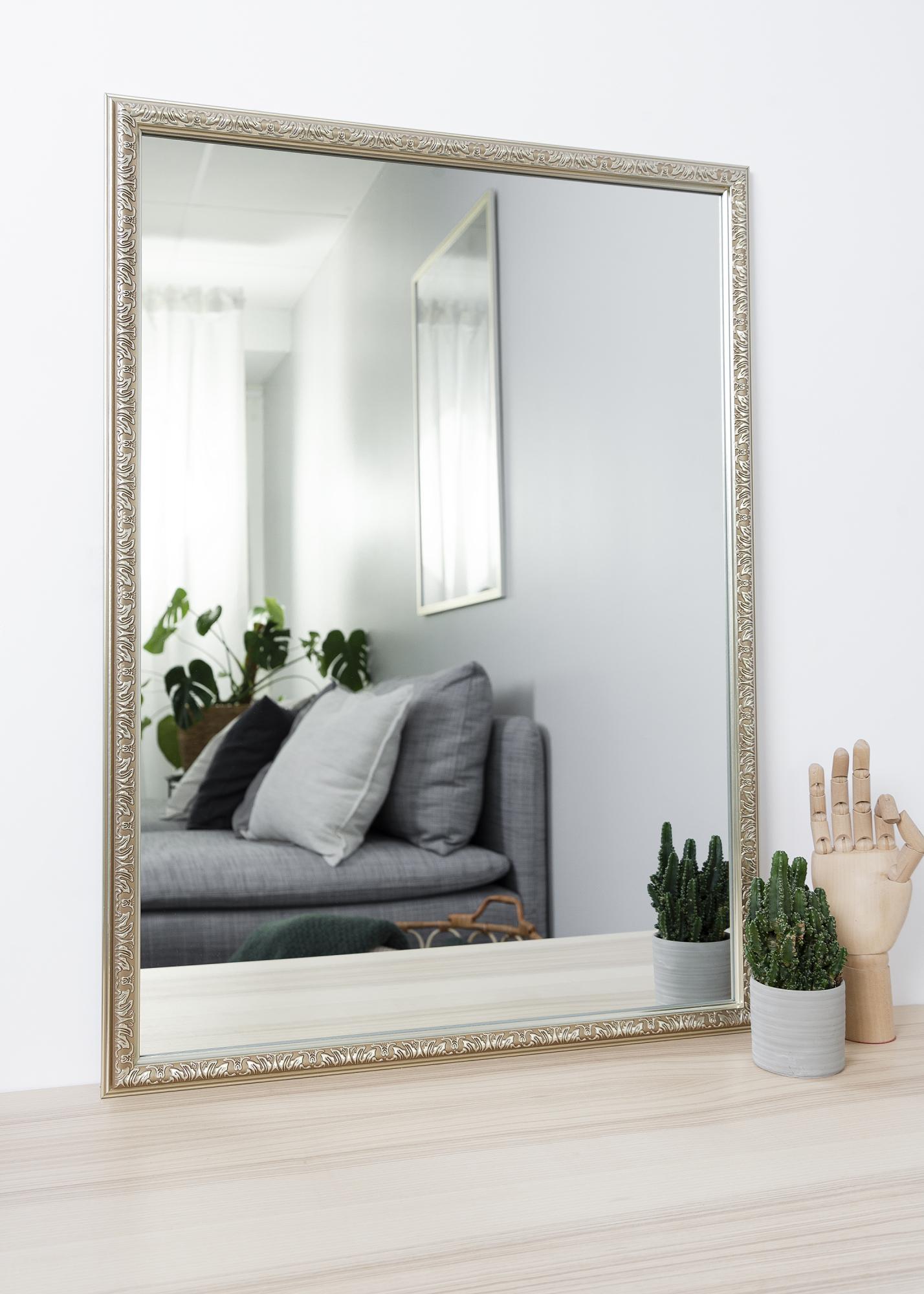 Käynnistä kehysvalitsin »Nost Hopeanvärinen on seinäpelisarjamme, jonka kehys on koristeltu epäsäännöllisillä merkeillä, mikä antaa peilille hieman mysteerisen ilmeen.