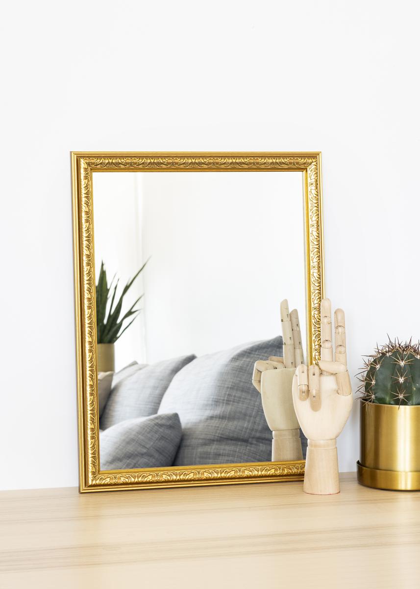 Käynnistä kehysvalitsin »Nost Kullanvärinen on seinäpelisarjamme, jonka kehys on koristeltu epäsäännöllisillä merkeillä, mikä antaa peilille hieman mysteerisen ilmeen.
