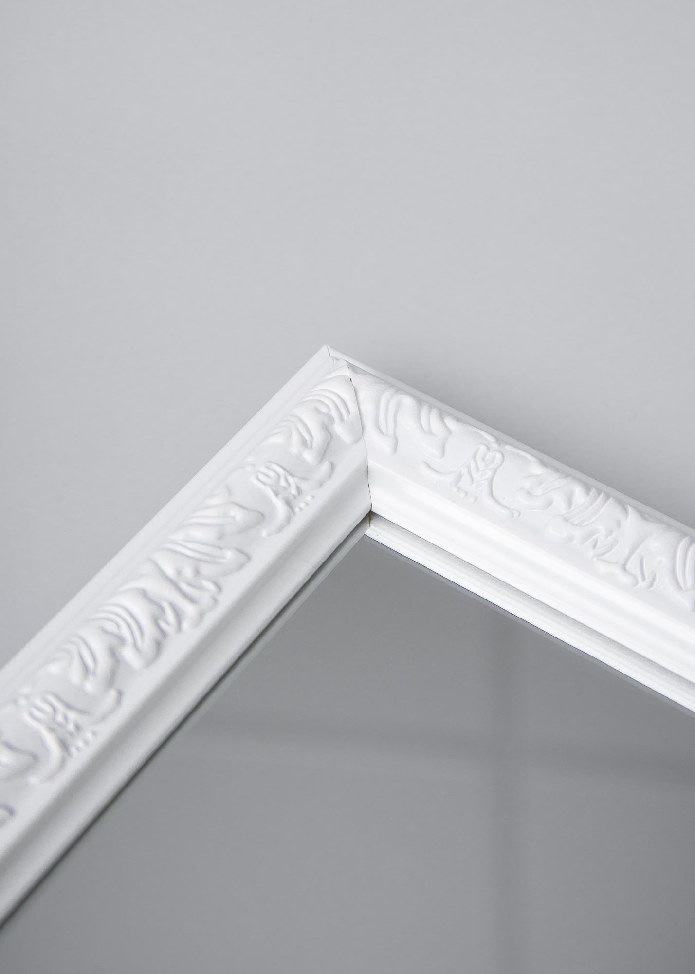 Käynnistä kehysvalitsin »Nost Valkoinen on seinäpelisarjamme, jonka kehys on koristeltu epäsäännöllisillä merkeillä, mikä antaa peilille hieman mysteerisen ilmeen.