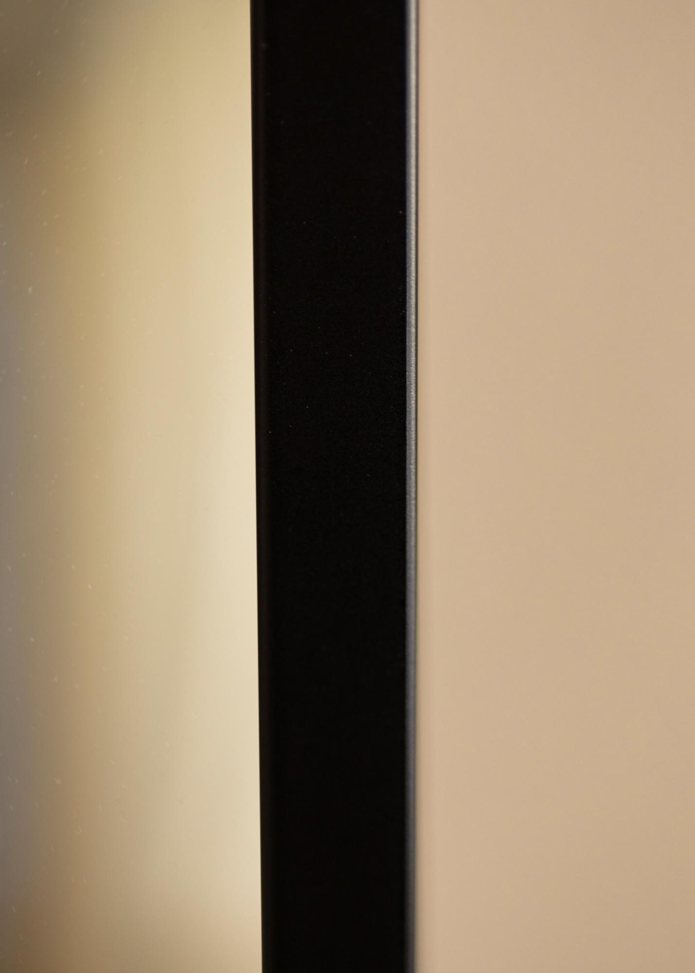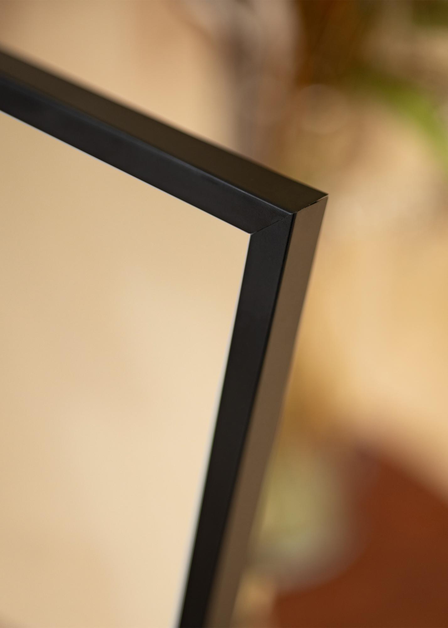 Peili Oslo Mustan kehys on 12 mm leveä ja valmistettu männystä, mikä antaa vakaan ja kestävän rakenteen. Peilin syvyys on 18 mm, mikä tekee siitä sekä tukevan että helpon käsitellä asennettaessa. Kapea kehys antaa peilille minimalistisen ulkonäön samalla kun se kehystää peilipinnan tyylikkäästi.
