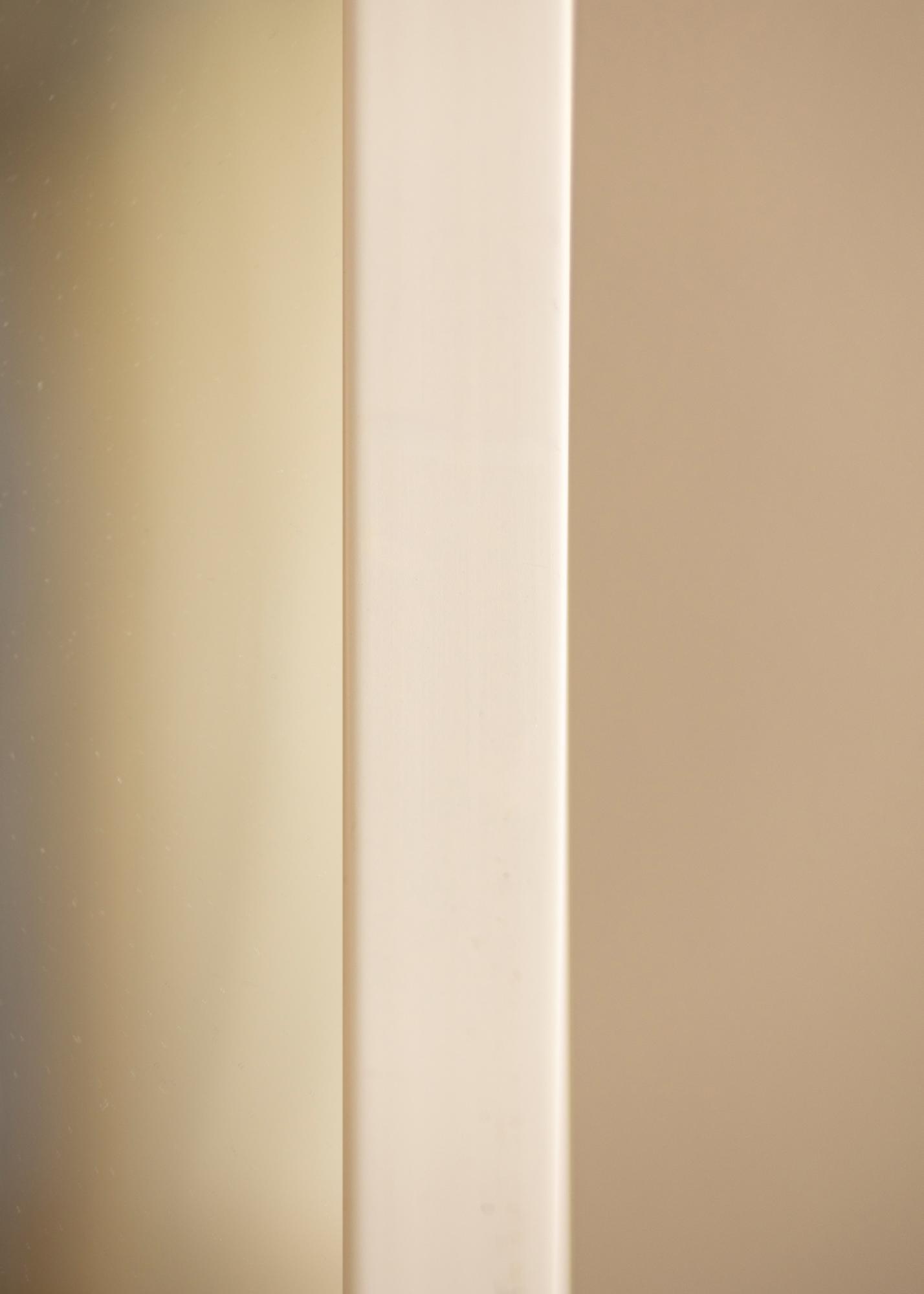 Peilin valkoinen väri antaa raikkaan ja modernin vaikutelman, joka sulautuu useimpiin sisustustyyleihin. 12 mm leveä kehyslistä kehystää peilin hillityllä mutta vaikuttavalla tavalla, mikä mahdollistaa sen, että se voi olla joko huoneen keskipisteenä tai sulautua osaksi hienovaraista yksityiskohtaa.