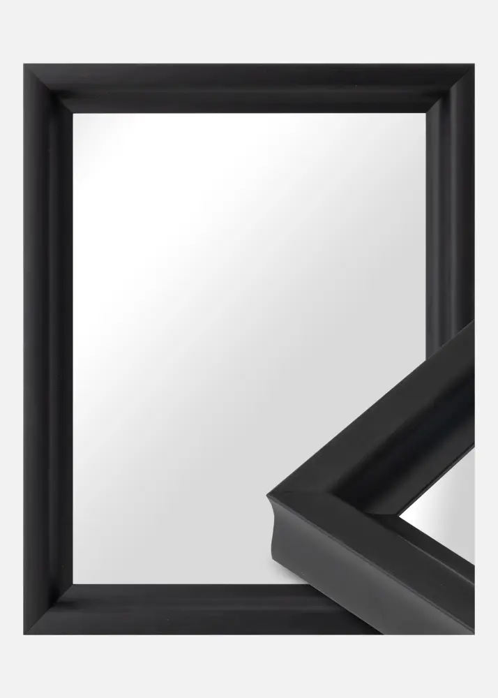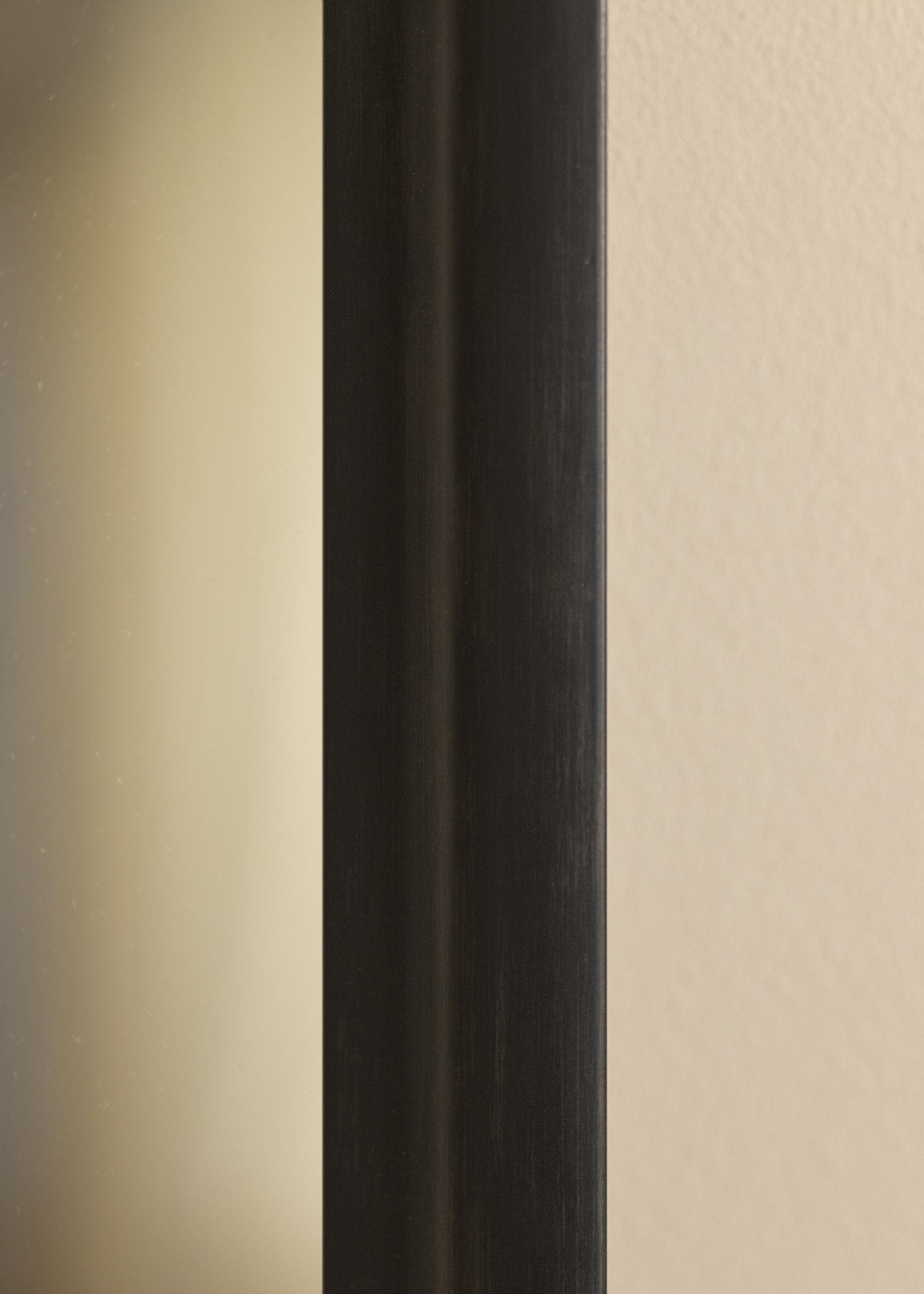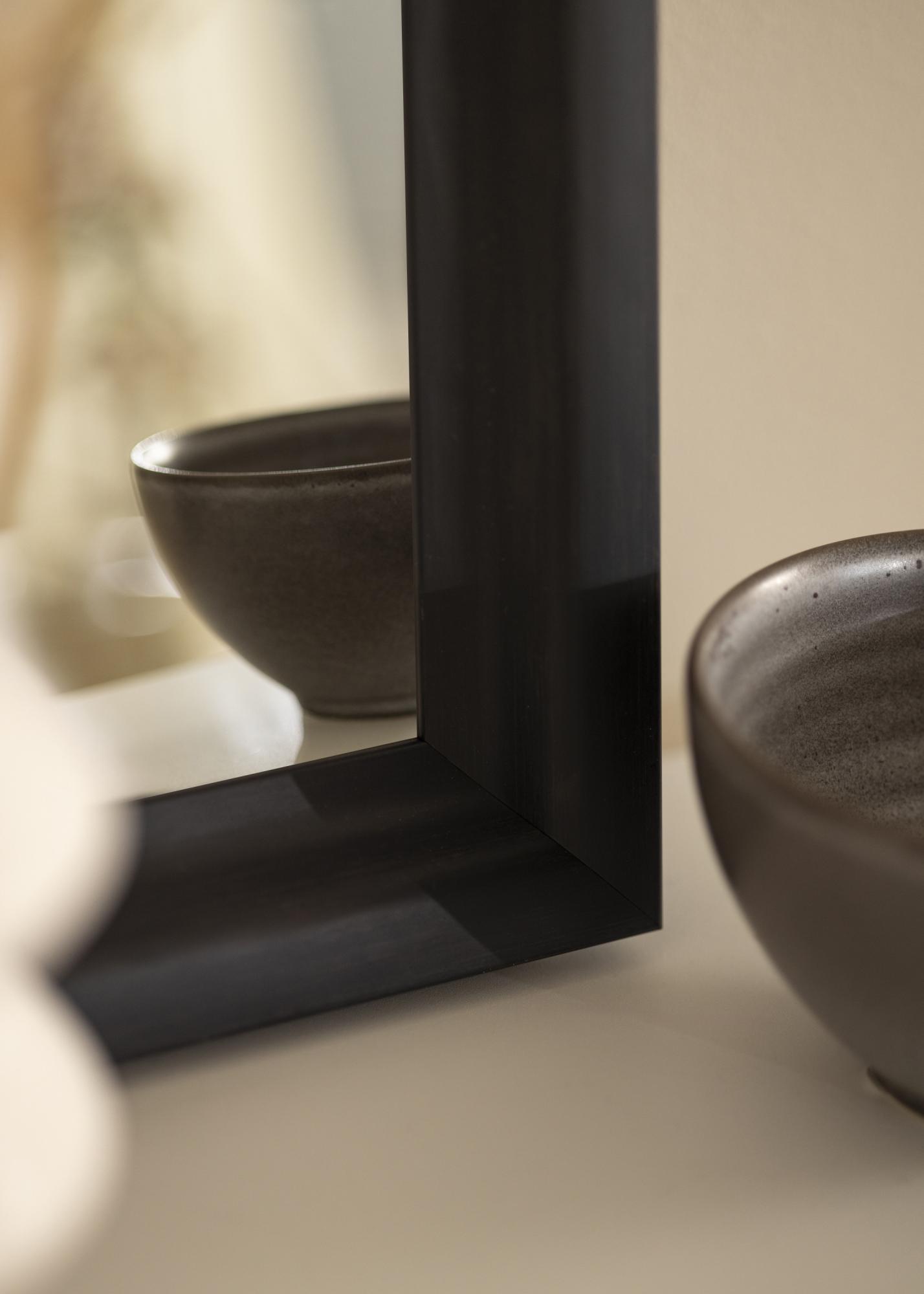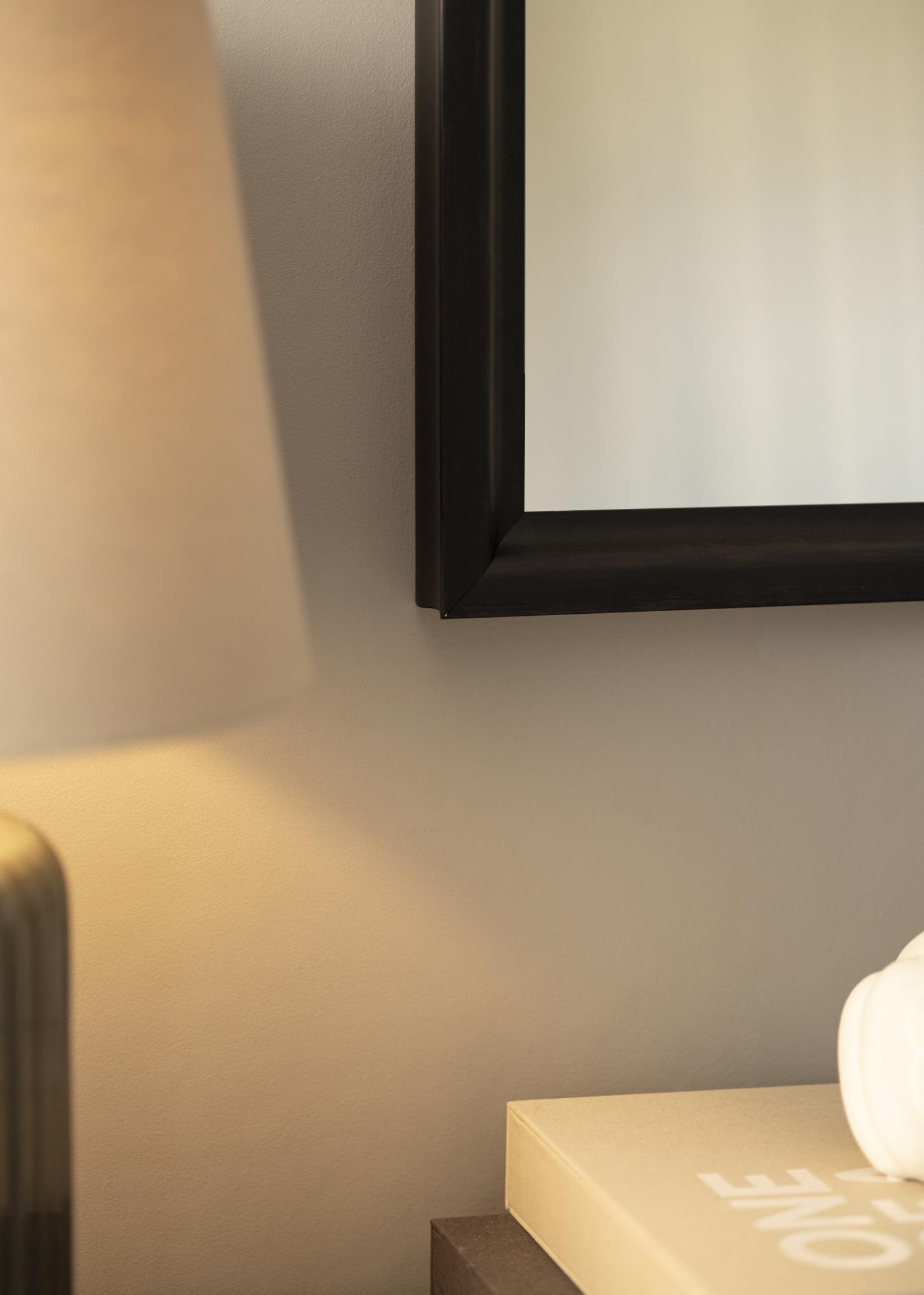 Perinteinen peili, jonka mustan ja ruskeansävytteinen pinta taittaa mustaan. Erinomainen valinta, kun etsit mittatilauspeiliä, jossa tummat sävyt yhdistyvät puun rakenteen kanssa.