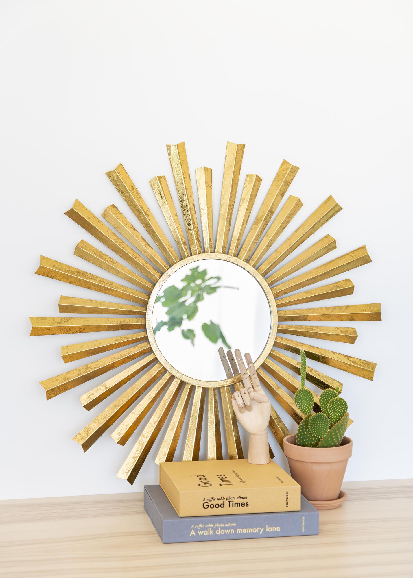 Tällä peilillä on selkeä ja elegantti muotoilu ja paljon luonnetta. Se saa sinut luonnollisesti ajattelemaan aurinkoa ja pelkästään tämä tekee peilistä miellyttävämmän.