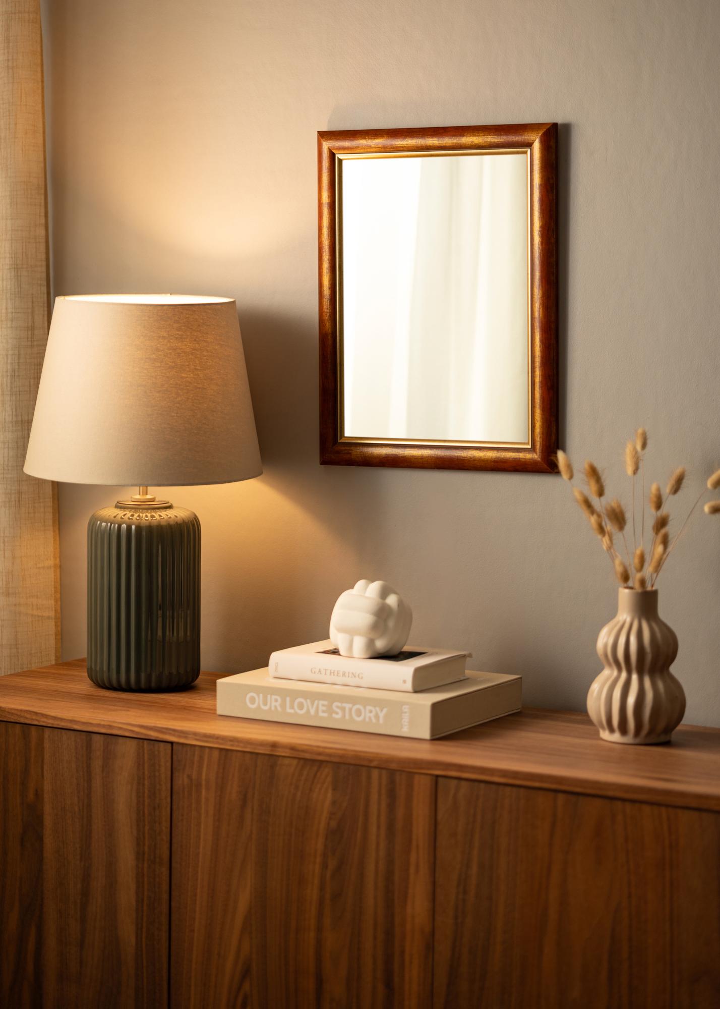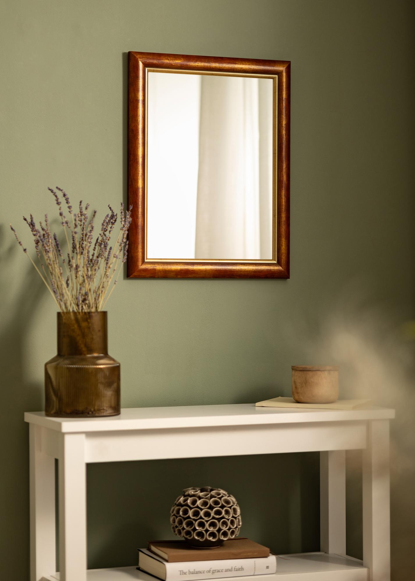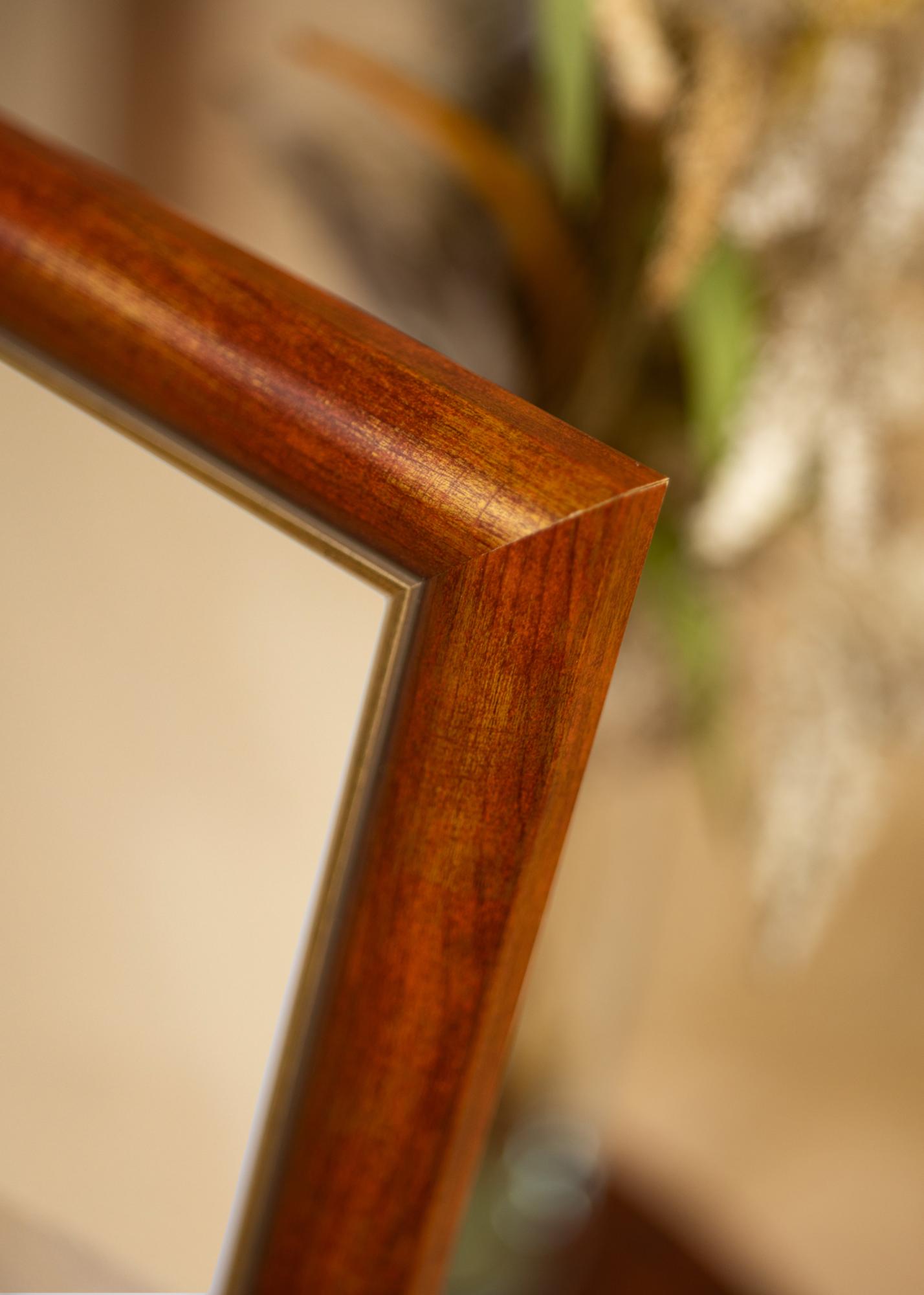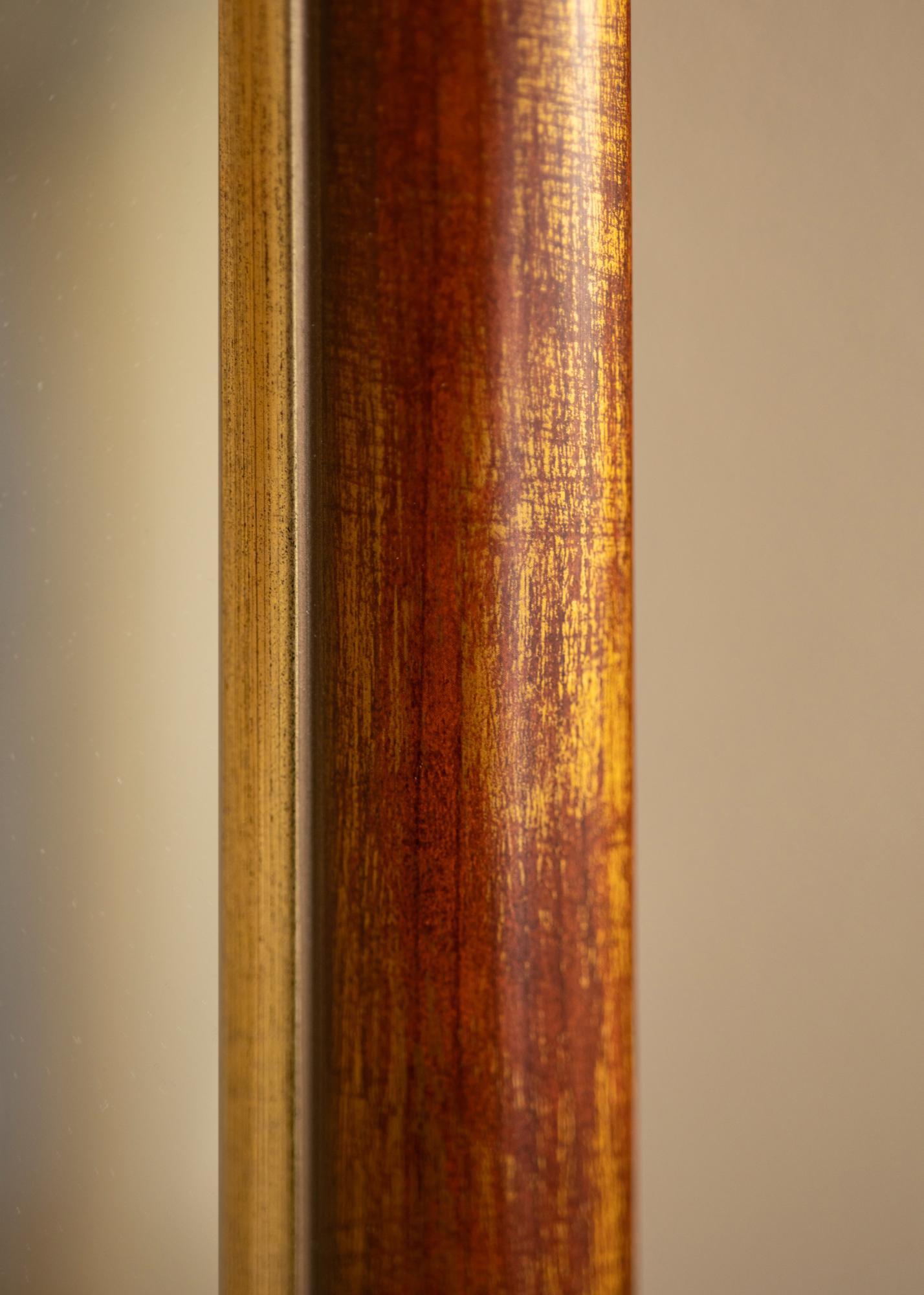 Ajaton ppuulista, joka on valmistettu Suomessa. Punaisen sävyt viimeistelevät näyttävän puupinnan, kun taas kultaiset sisäreunukset korostavat peililasia. Reunukset ovat kaiken kaikkiaan 41 mm leveät ja 19 mm syvät, minkä johdosta peilisi saa lisää syvyyttä.